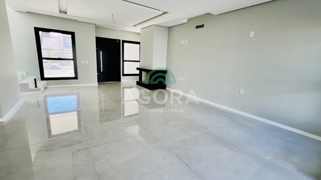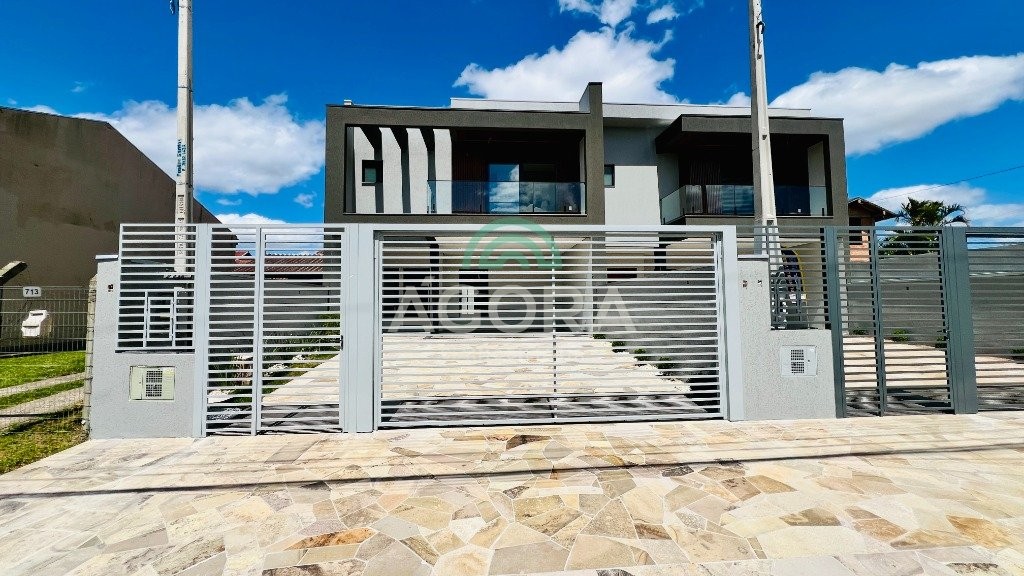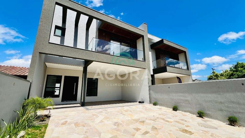 Sobrado moderno com 194,36m² privativos, 4 (quatro) dormitórios sendo 2 (duas) suítes, closet, living integrado, sala de estar com lareira, cozinha com espera para ilha, área de serviço, espaço gourmet com churrasqueira, amplo pátio nos fundos, vaga coberta para 2 carros mais 2 descobertas.