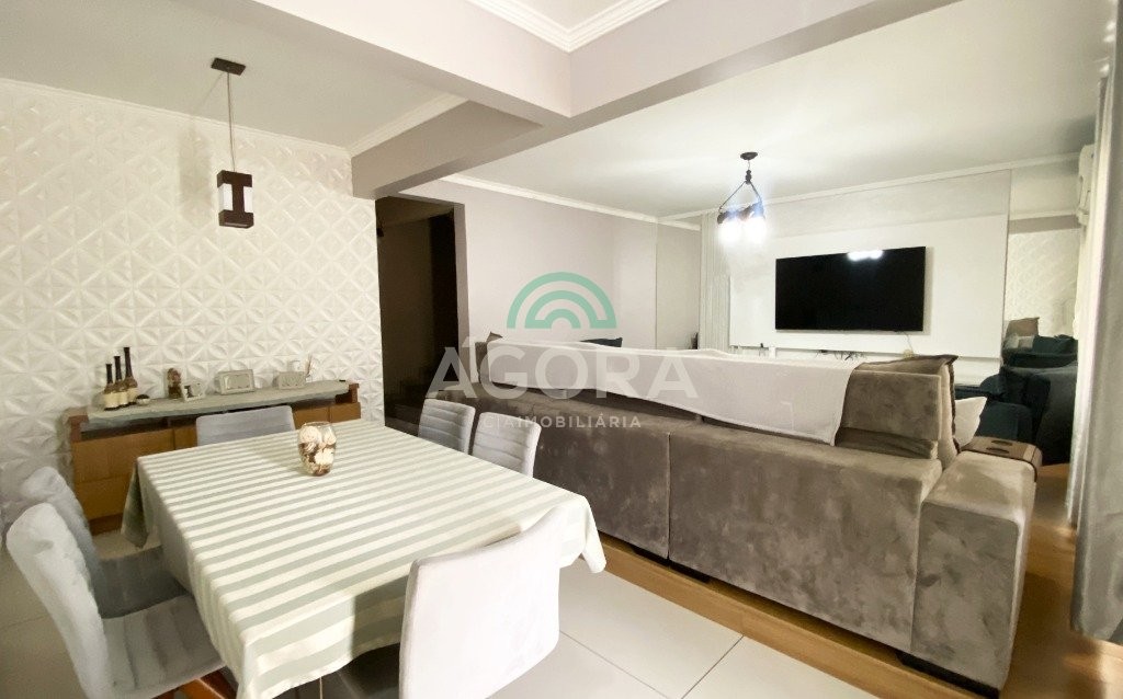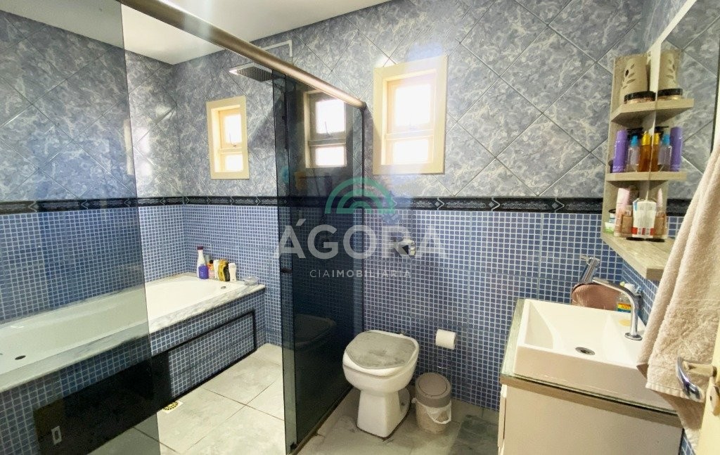 Sobrado com 220m privativos, 3(tres) dormitórios sendo 1(um) suíte master com banheira de hidromassagem, vaga coberta para 3(tres) veiculos, cozinha mobiliada com móveis sob medida, sala de estar com lareira, sala de jantar e sala de jogos. Lavanderia e espaço com churrasqueira. Permanecem no imovel todos os móveis sob medida e 2(dois) aparelhos de ar condicionao split.
