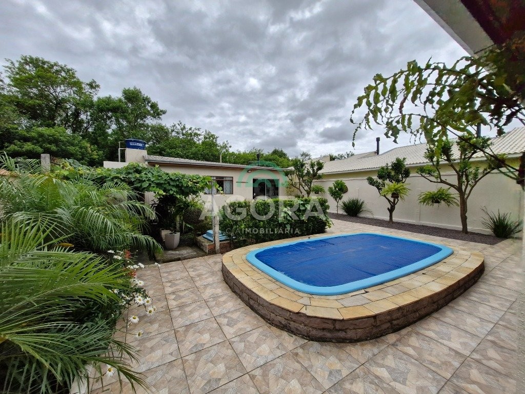 Casa térrea em excelente estado com 133,42m² privativos; 3 (três) dormitórios, sala de estar, cozinha, pátio com jardim, plantas, vasos de flores, árvores frutíferas e horta; garagem coberta para 2 (dois) carros, piscina. Imóvel com energia solar, inversor de 3k. Ficam os móveis planejados, splits e ventiladores de teto.