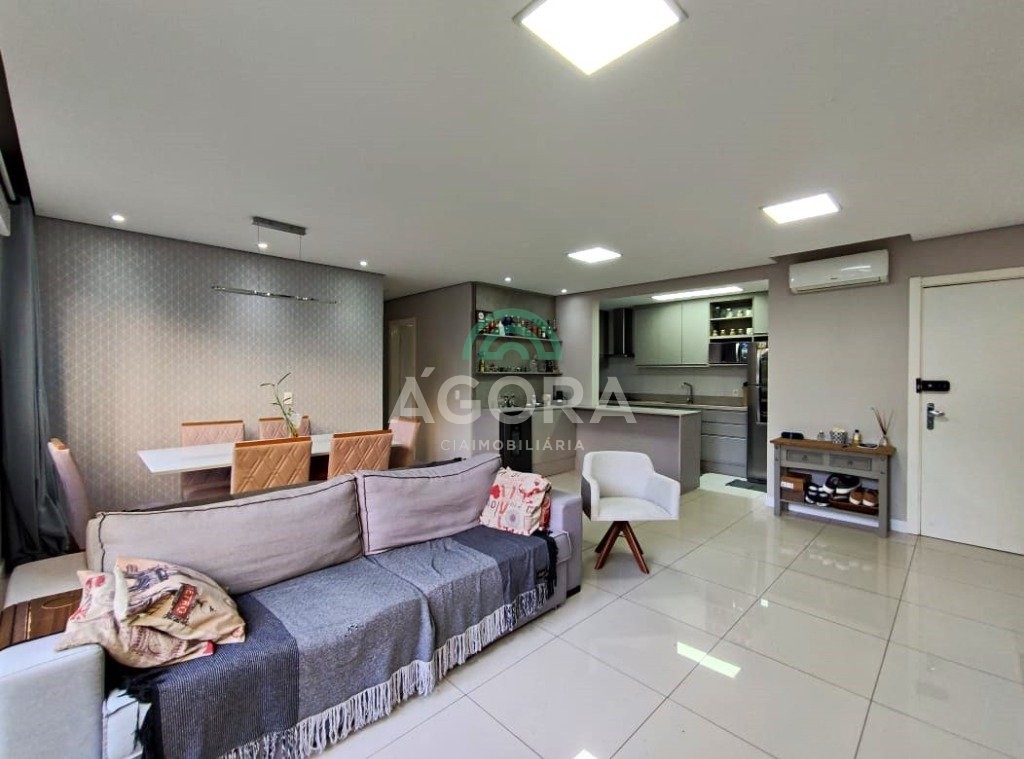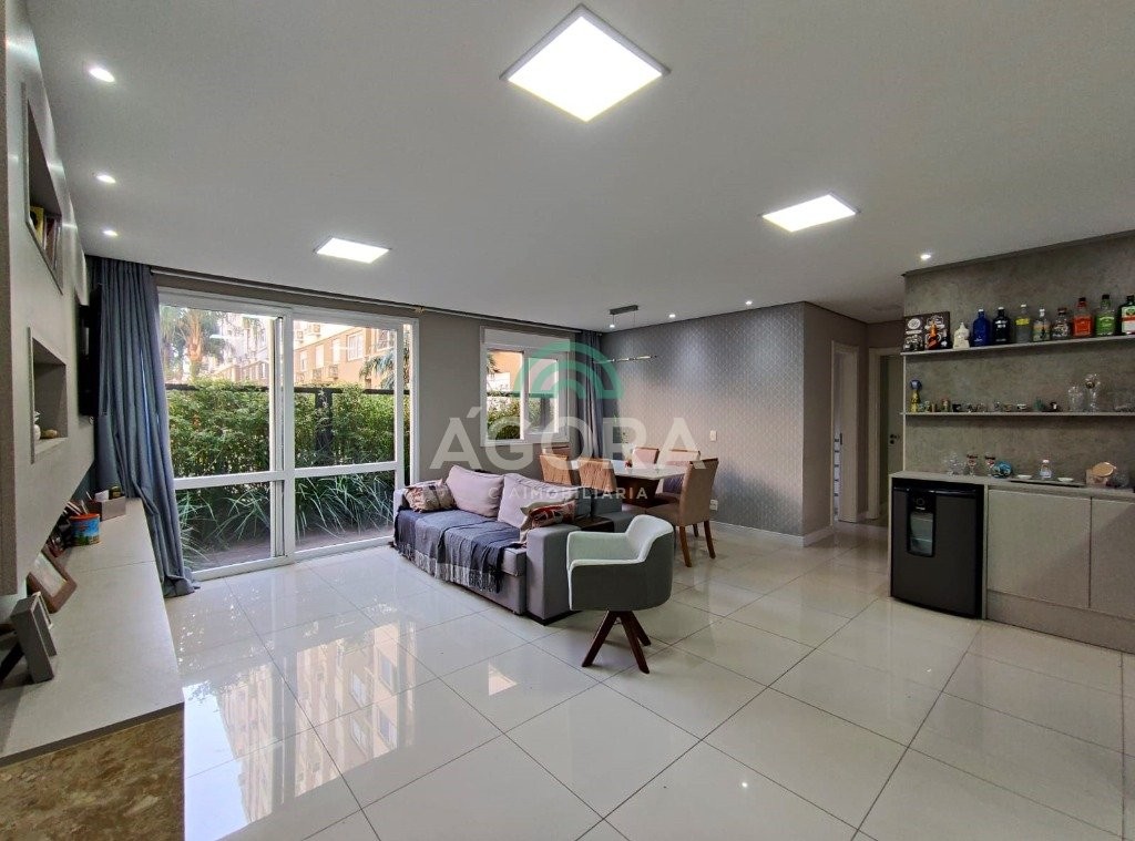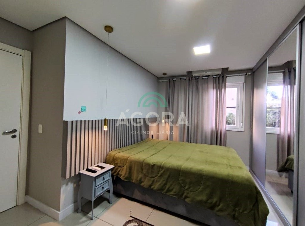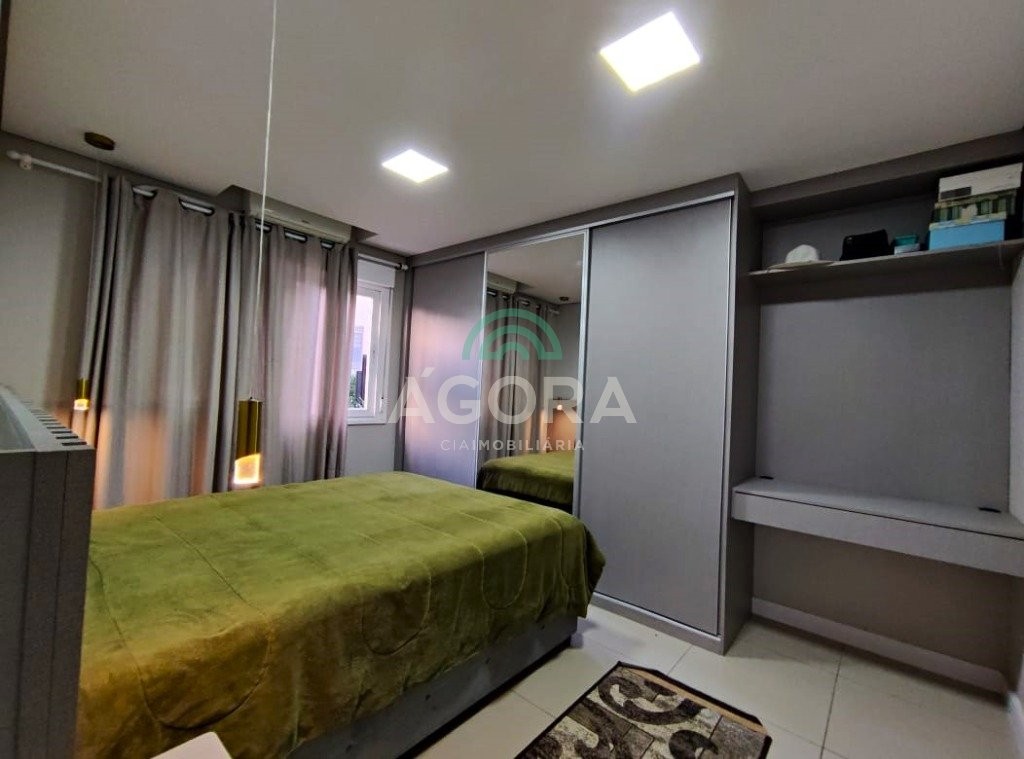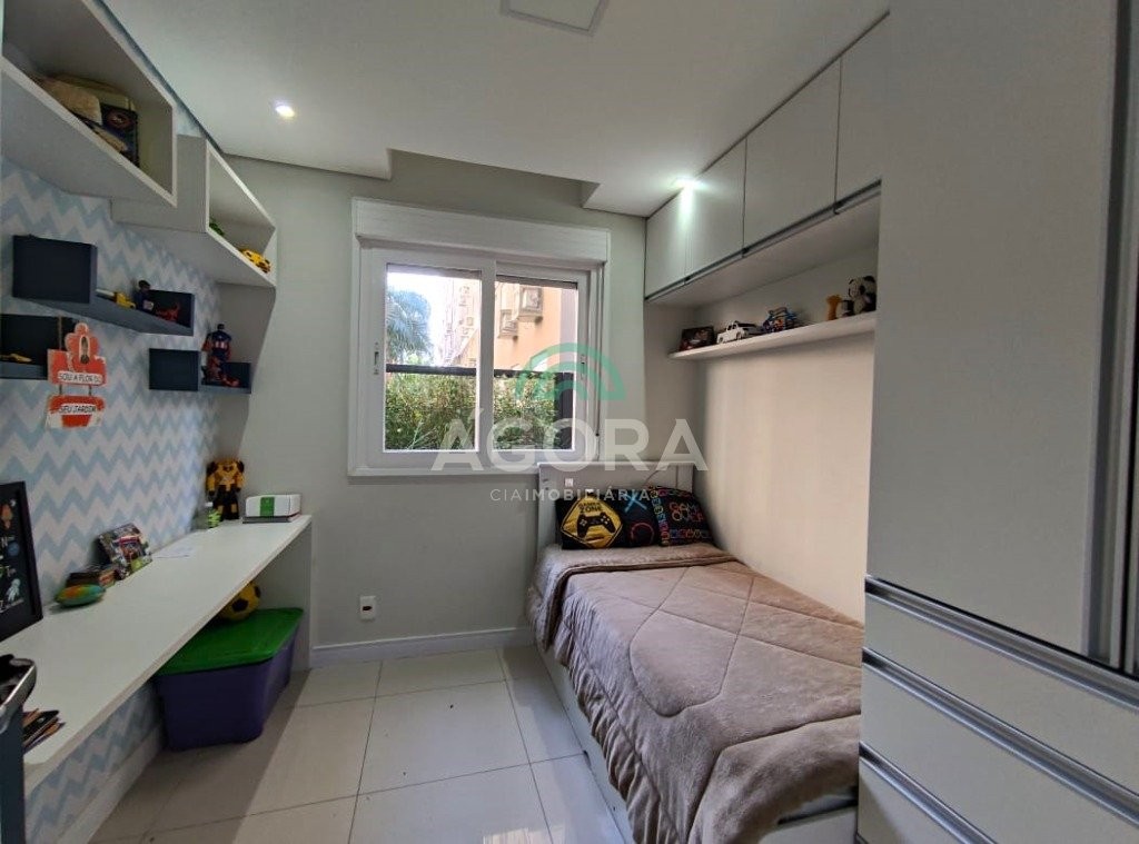 1 (uma) suíte, cozinha americana com churrasqueira, área de serviço, sala de estar e jantar integradas e vaga de garagem coberta para 1 (um) carro. Ficam no imóvel todos os móveis planejados, cooktop, coifa, junquer de água quente, com exceção dos demais eletrodomésticos. Diferenciado em acabamentos de rebaixo em gesso com iluminação em led de sanca e pontos de luz embutidos, portas de correr de material em alta qualidade, telas de proteção de queda e contra insetos, todos armários com puxadores inteligentes, piso porcelanato nas áreas frias e nos dormitórios. Condomínio com infraestrutura completa: portaria 24hs, piscina adulto e infantil, salão de festas, espaço gourmet, playground, sala de jogos, espaço kids, espaço pet, academia e quadra esportiva. Próximo parkshopping canoas. Aceita financiamento, fgts e avalia imóvel como parte de pagamento.
