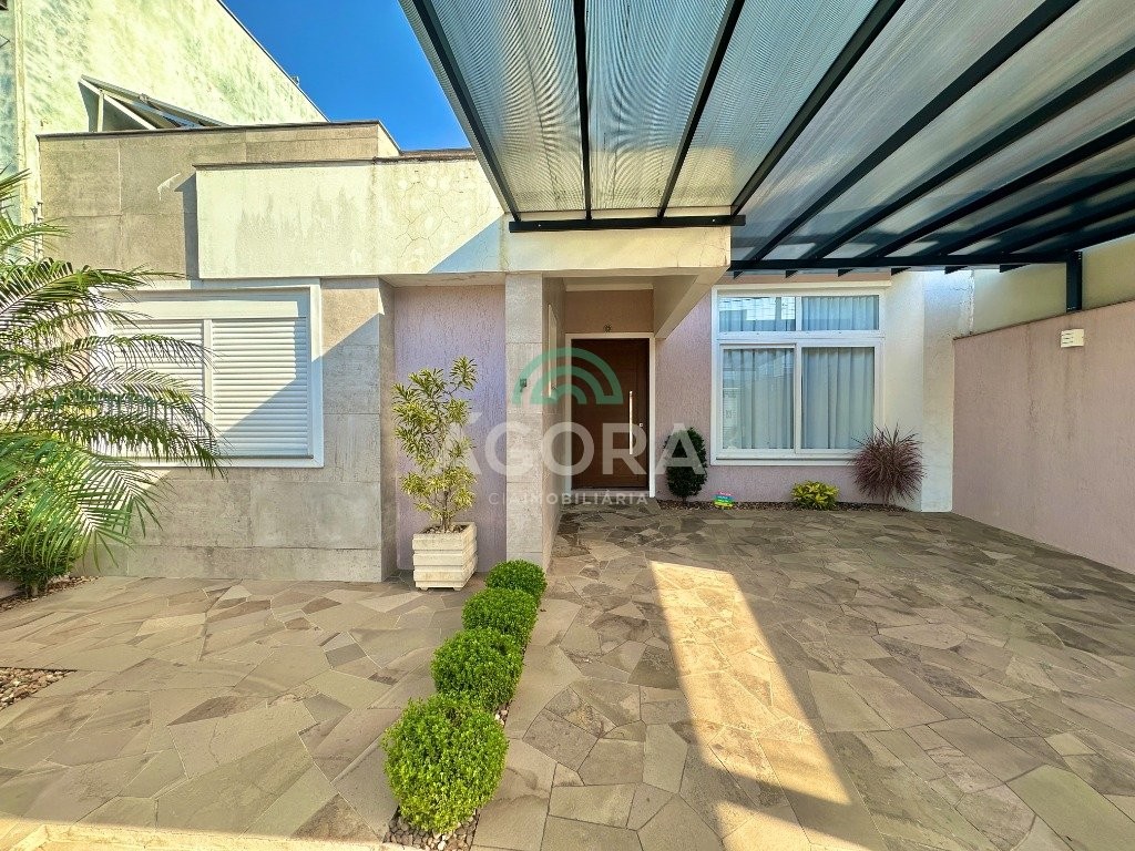 Ágora Cia Imobiliária vende: Lindo sobrado de 218m² privativos, com 4 (quatro) dormitórios, sendo 1 (uma) suíte, um dormitório terreo , escritório, sala de estar, jantar e cozinha integradas, área de serviço, pátio e vaga para 2 (dois) carros. Ficam no imovel a cozinha e moveis sob medida. Localizado no bairro Mont'Serrat em Canoas.