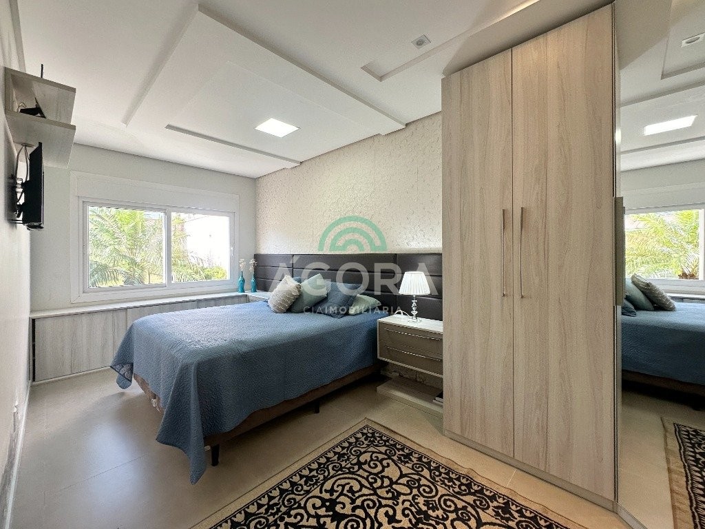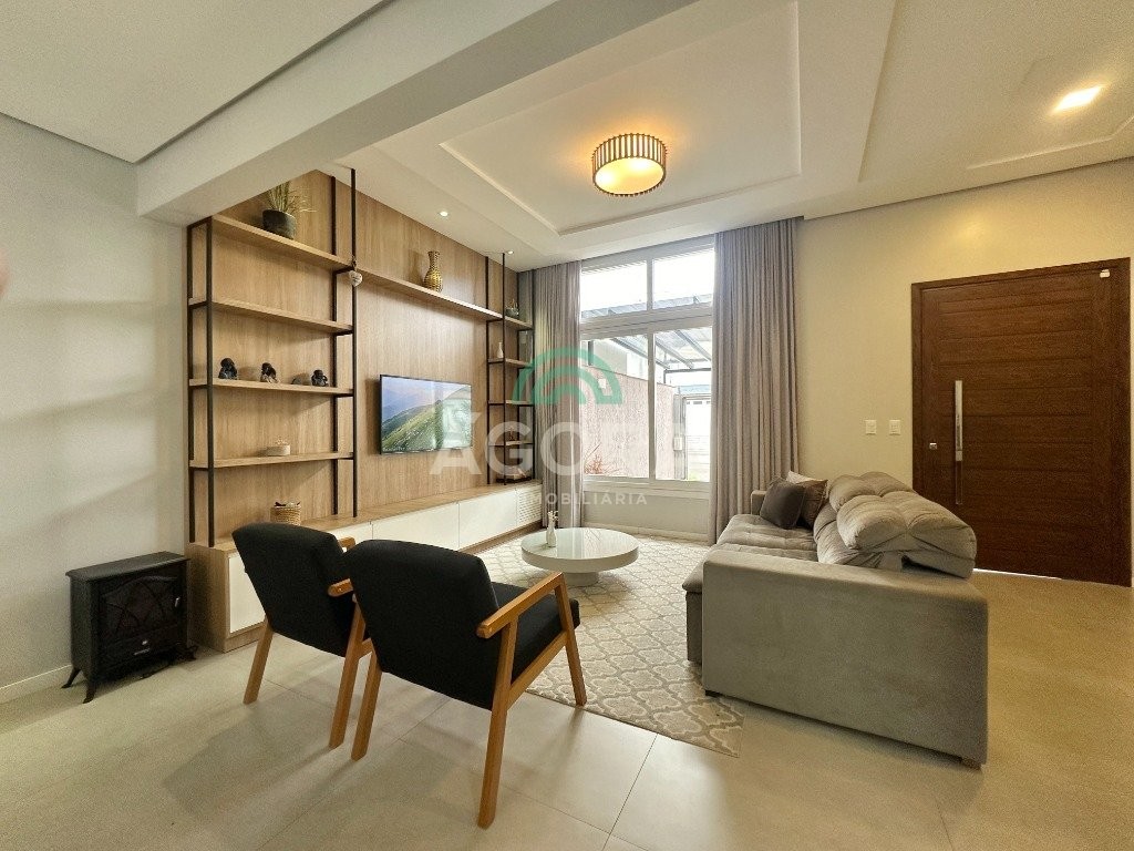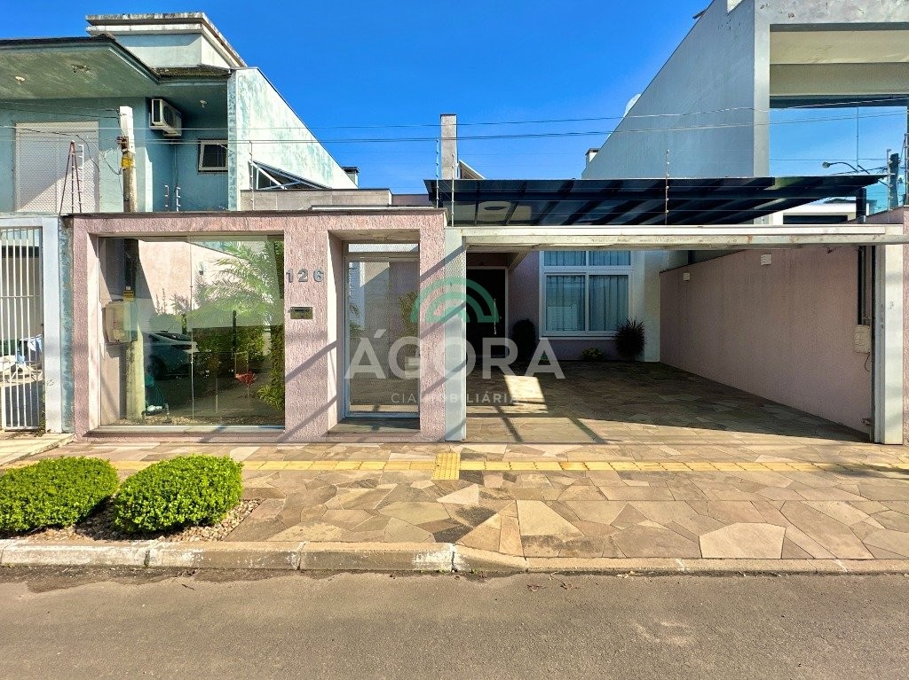 Ágora Cia imobiliária Vende: Sobrado mobiliado de 178m² privativos com 3(três) dormitórios sendo 1(um) suíte master com banheiro, closet e sacada, terraço, living integrado entre sala de estar, jantar e cozinha, banheiro social, lavabo, área de serviço, garagem para 3(três) veículos, sendo 2(duas) vagas cobertas, pátio em frente e aos fundos, espaço gourmet completo com churrasqueira. Permanece no imóvel todos os móveis planejados, mobília solta, eletrodomésticos e aparelhos de ar condicionado, possui também, sistema de câmeras, cerca elétrica, aquecedor de água a gás com saída em todas as principais torneiras. Localizado no bairro Mont serrat, em uma região em desenvolvimento, próximo ao Asun Center, Park Shopping Canoas, mercados, farmácias e os principais pontos da cidade.