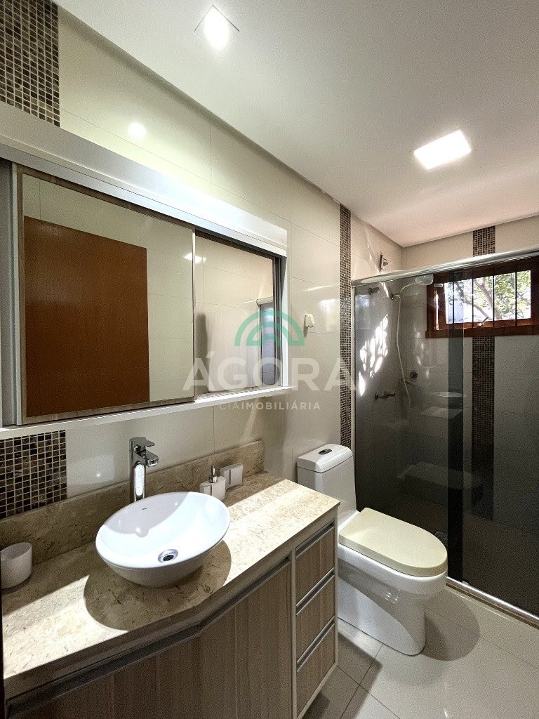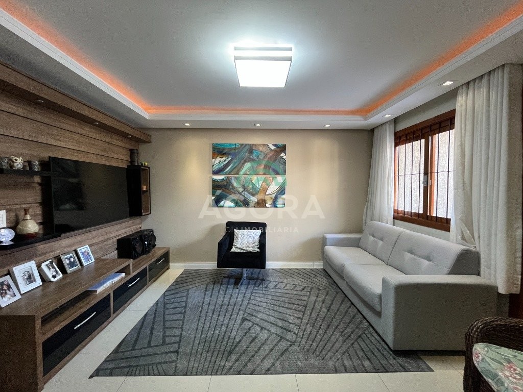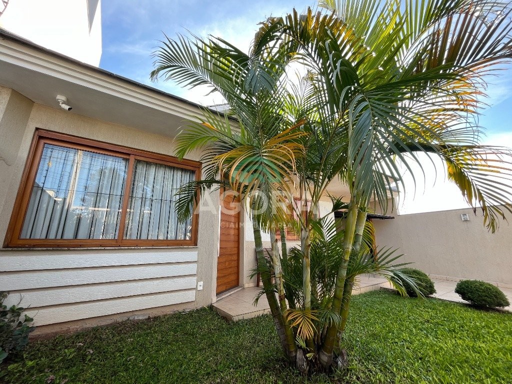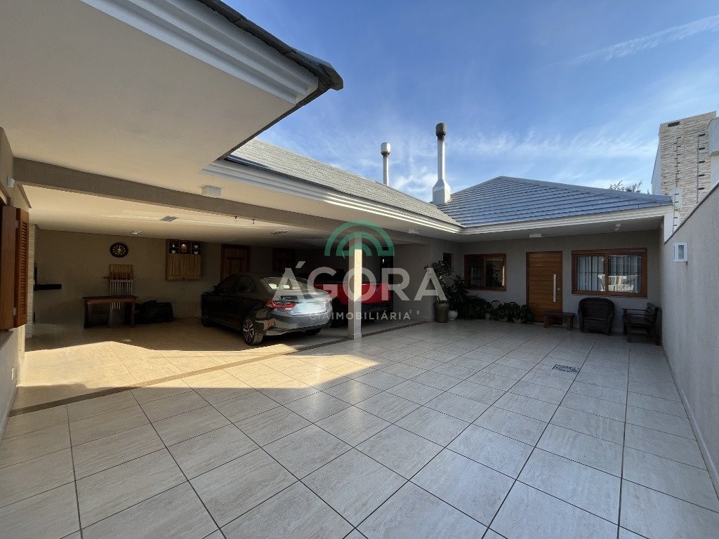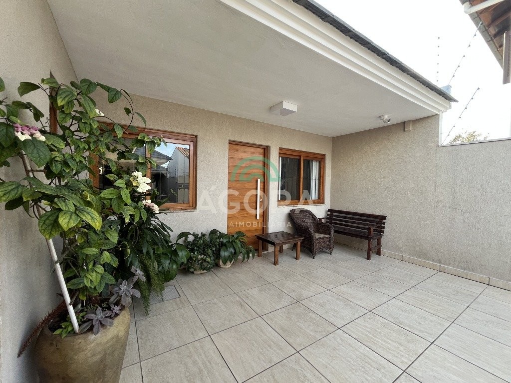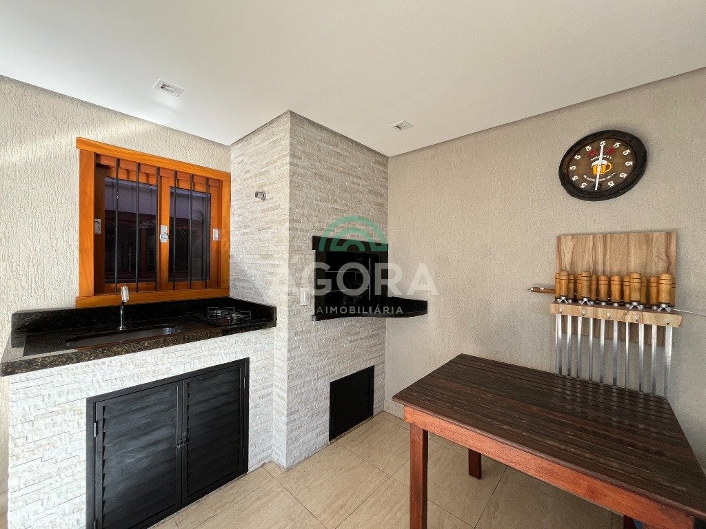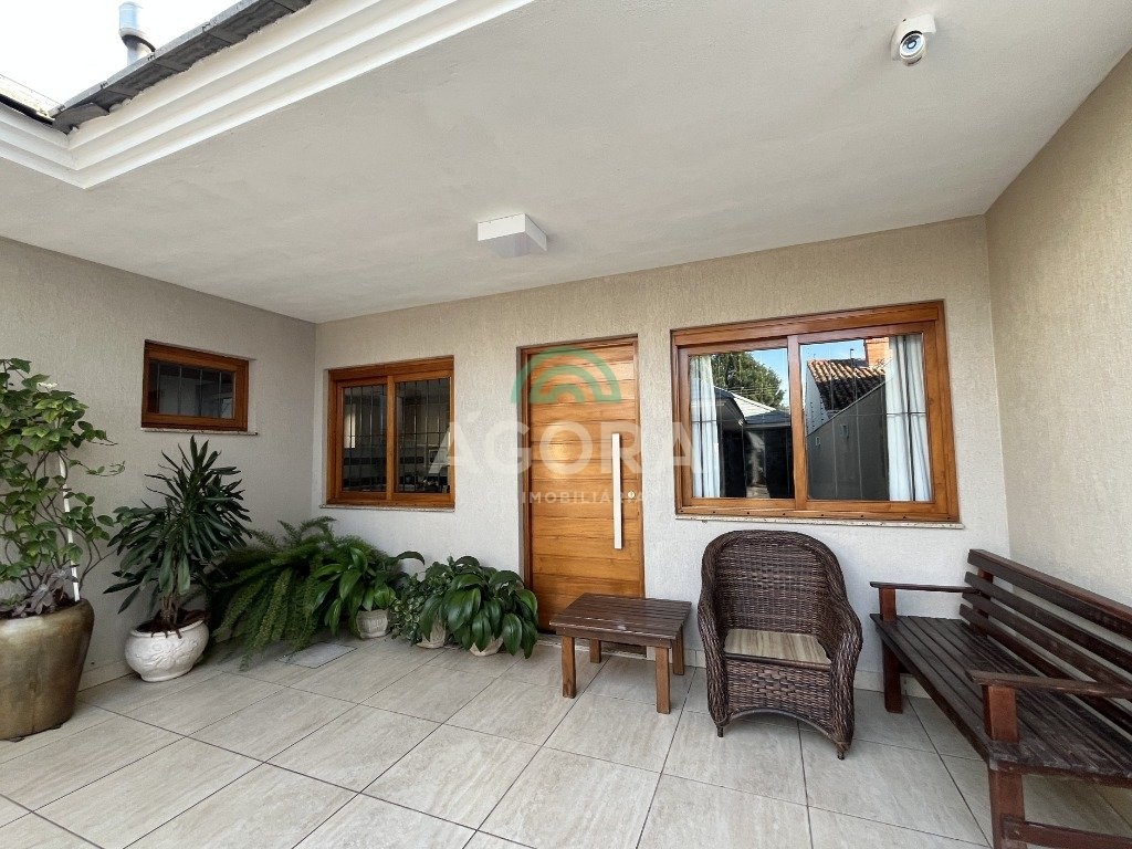 Ágora cia imobiliária vende , casa de 3(três) dormitórios sendo 1(uma) suíte , sala de jantar e estar, cozinha , área de serviço, garagem coberta para 5(cinco)carros, área gourmet com churrasqueira e pátio. Nos fundos casa de 2(dois) dormitórios, sala, cozinha, banheira. Permanece nos 2(dois ) imóveis todos os moveis planejados. Piso porcelanato em todos os ambientes, grades internas em todas as janelas, sistema de aquecimento central com caldeira a lenha, lumiarias de led , câmeras com monitoramento , sistema de placas solar, alarme, cerca elétrica , 4 ar split inverter e 1 split normal.