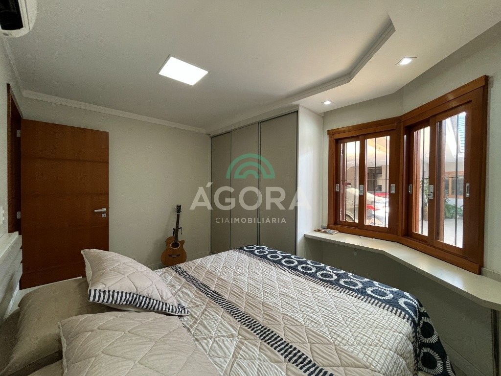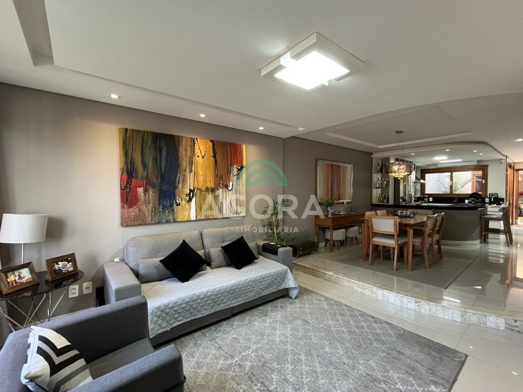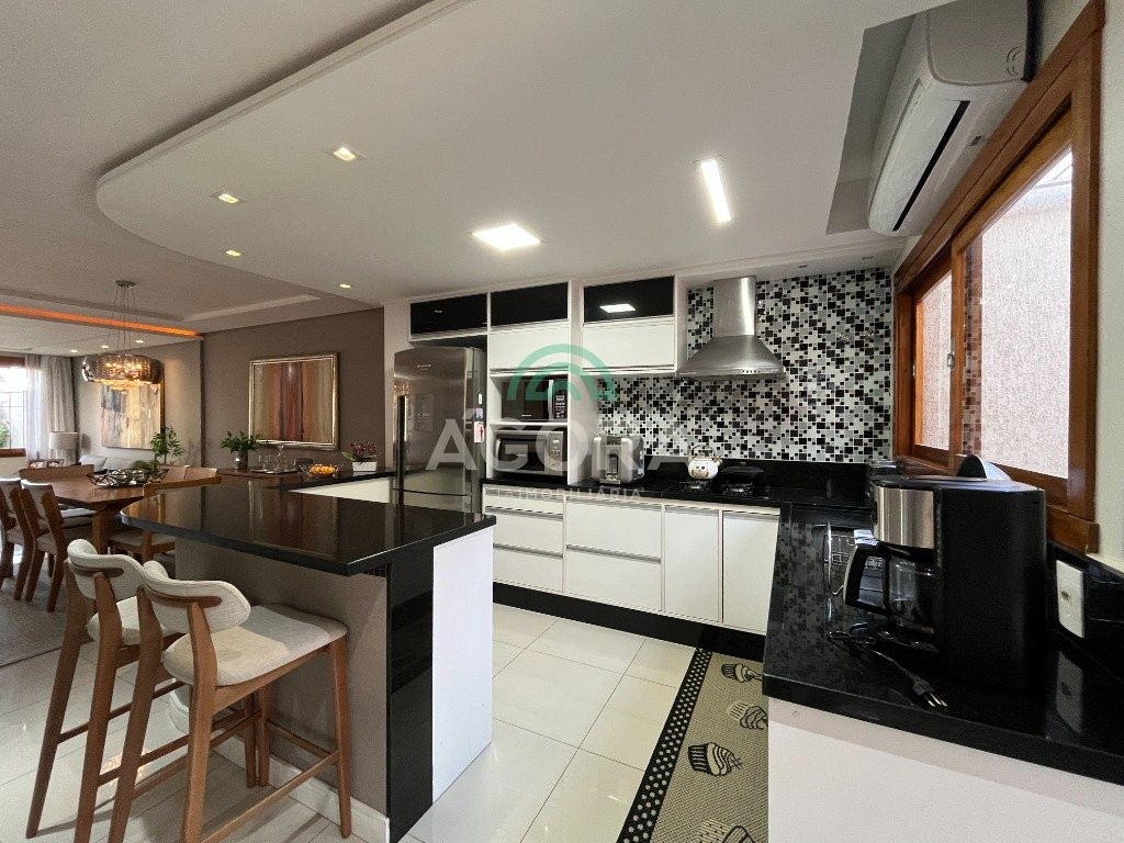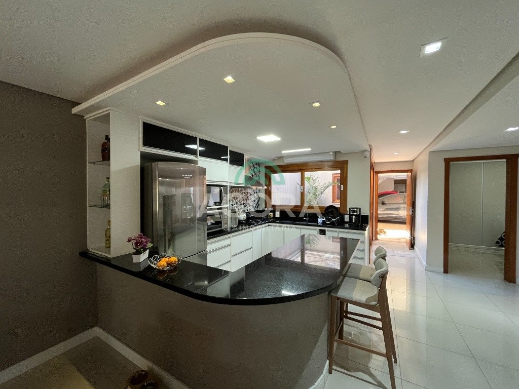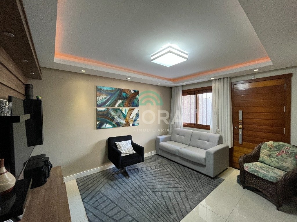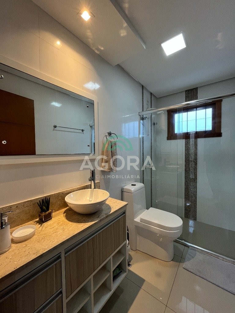 Ágora cia imobiliária vende , casa de 3(três) dormitórios sendo 1(uma) suíte , sala de jantar e estar, cozinha , área de serviço, garagem coberta para 5(cinco)carros, área gourmet com churrasqueira e pátio. Nos fundos casa de 2(dois) dormitórios, sala, cozinha, banheira. Permanece nos 2(dois ) imóveis todos os moveis planejados. Piso porcelanato em todos os ambientes, grades internas em todas as janelas, sistema de aquecimento central com caldeira a lenha, lumiarias de led , câmeras com monitoramento , sistema de placas solar, alarme, cerca elétrica , 4 ar split inverter e 1 split normal.