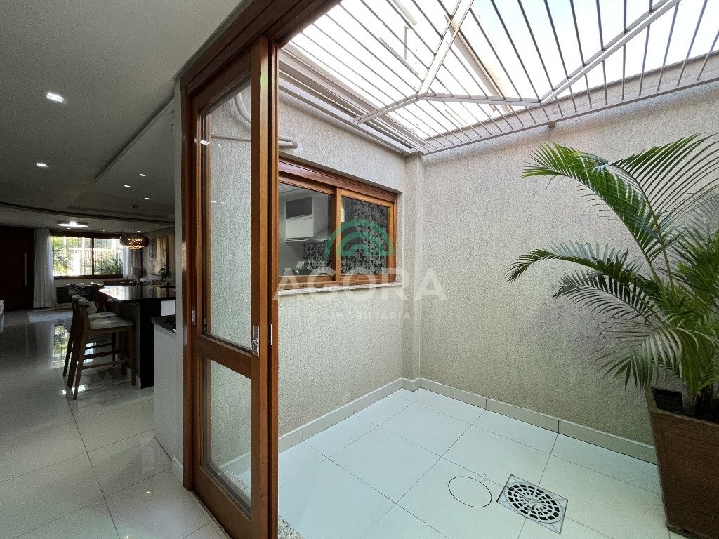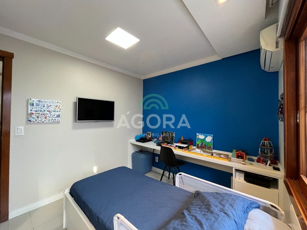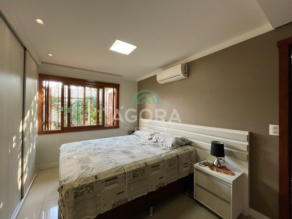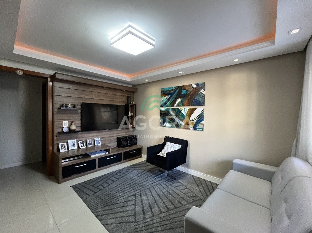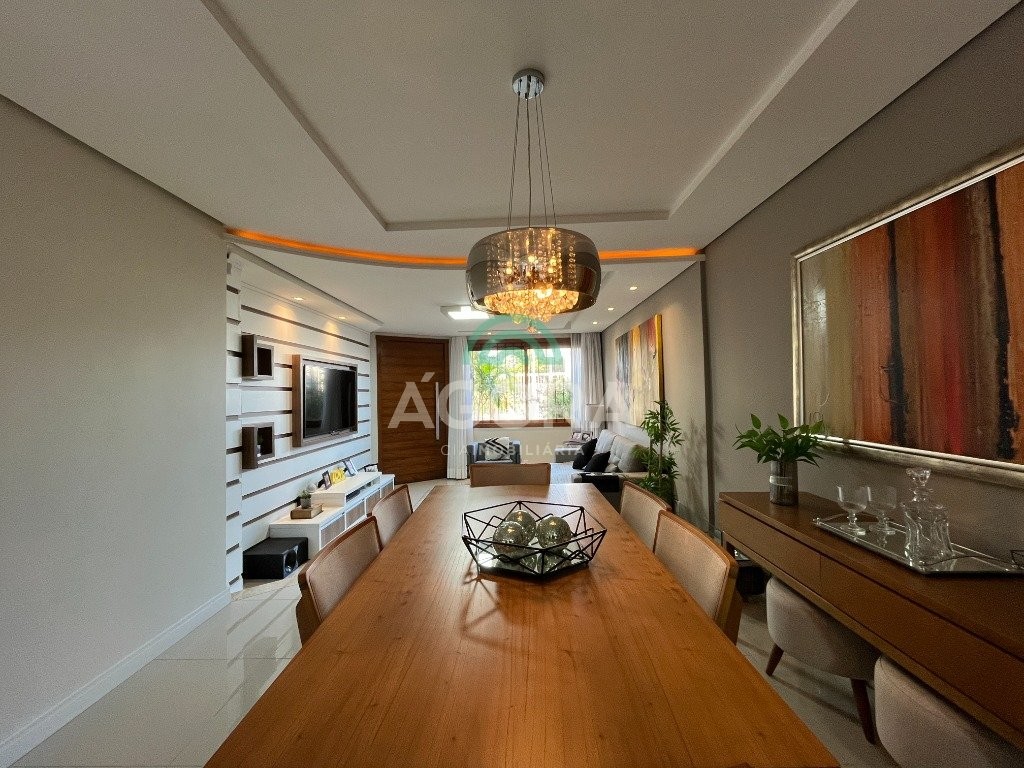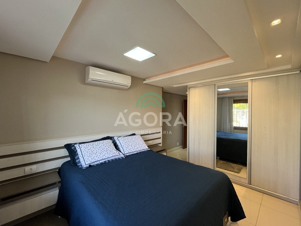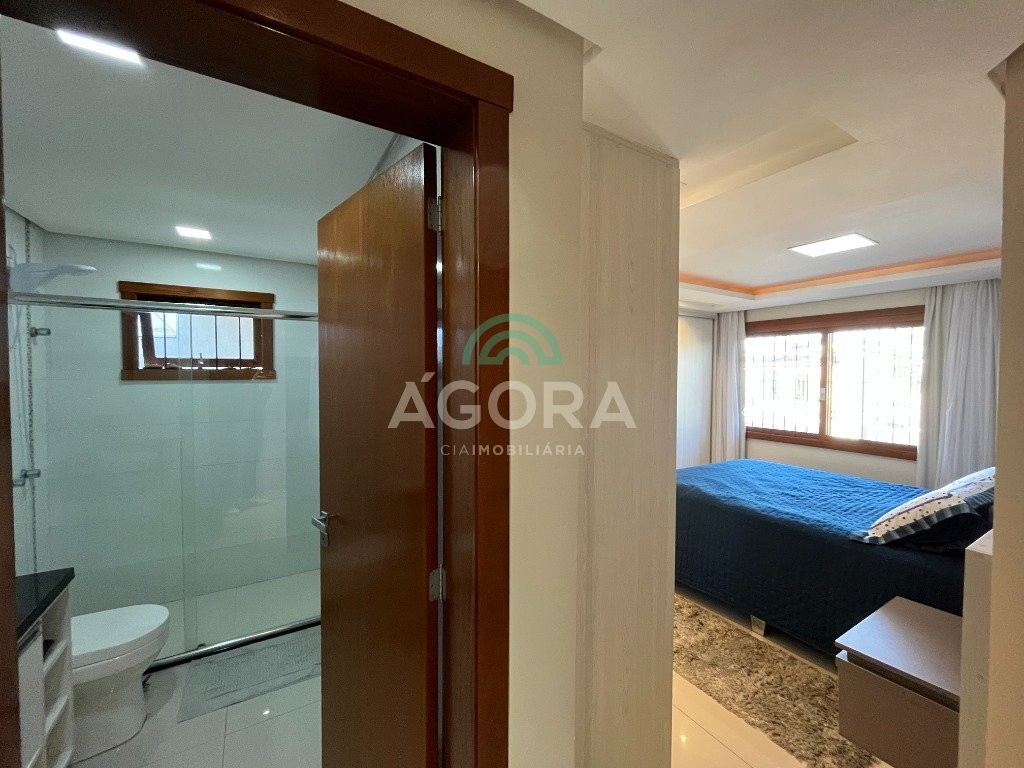Ágora cia imobiliária vende , casa de 3(três) dormitórios sendo 1(uma) suíte , sala de jantar e estar, cozinha , área de serviço, garagem coberta para 5(cinco)carros, área gourmet com churrasqueira e pátio. Nos fundos casa de 2(dois) dormitórios, sala, cozinha, banheira. Permanece nos 2(dois ) imóveis todos os moveis planejados. Piso porcelanato em todos os ambientes, grades internas em todas as janelas, sistema de aquecimento central com caldeira a lenha, lumiarias de led , câmeras com monitoramento , sistema de placas solar, alarme, cerca elétrica , 4 ar split inverter e 1 split normal.