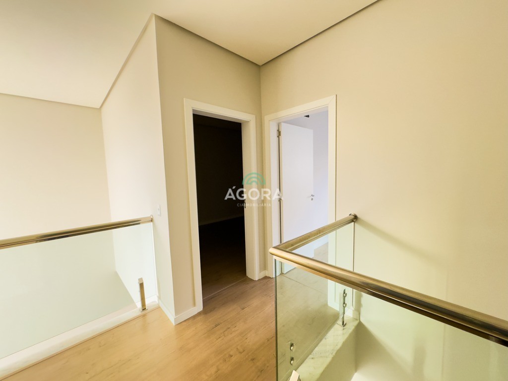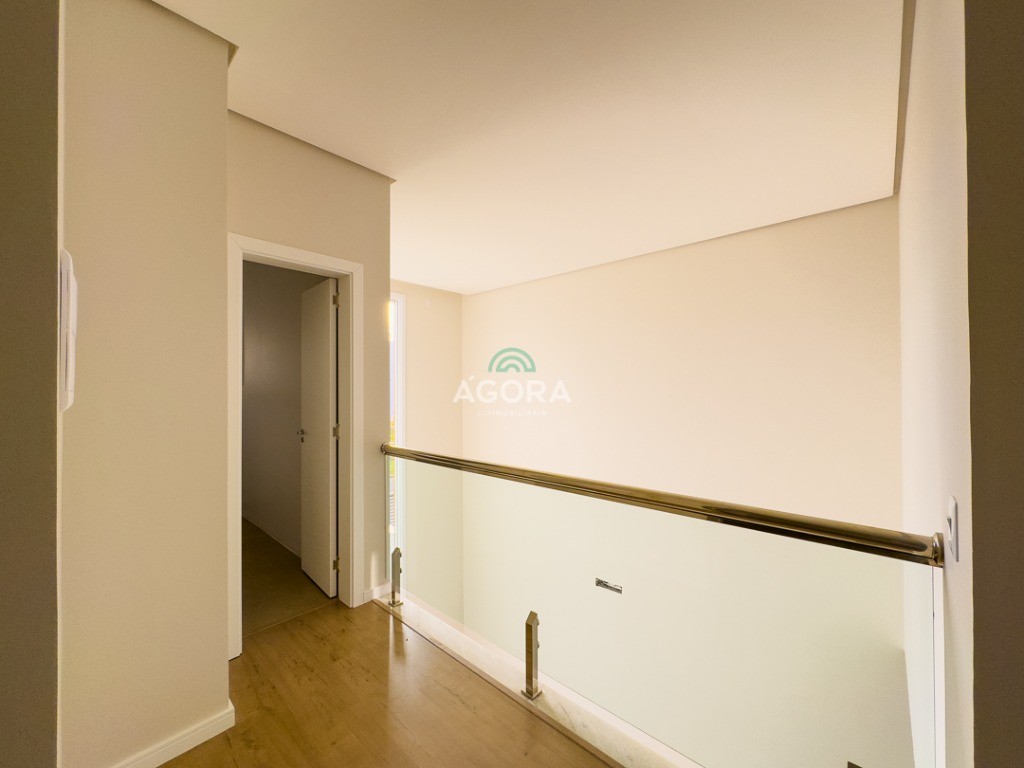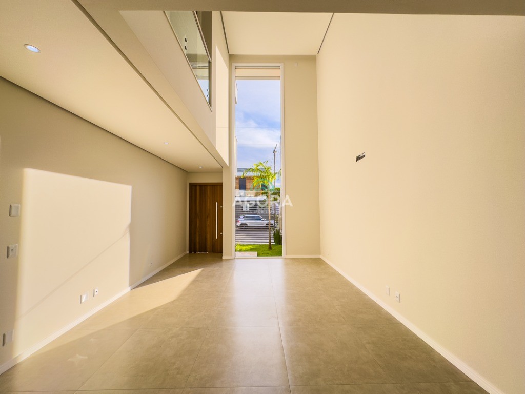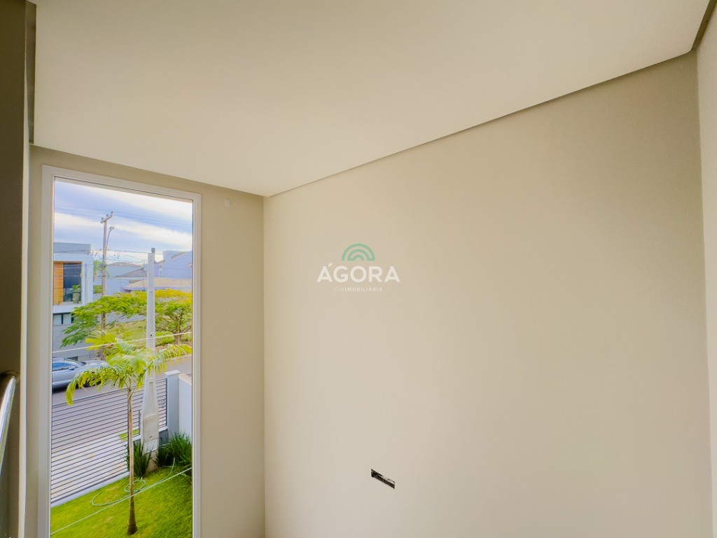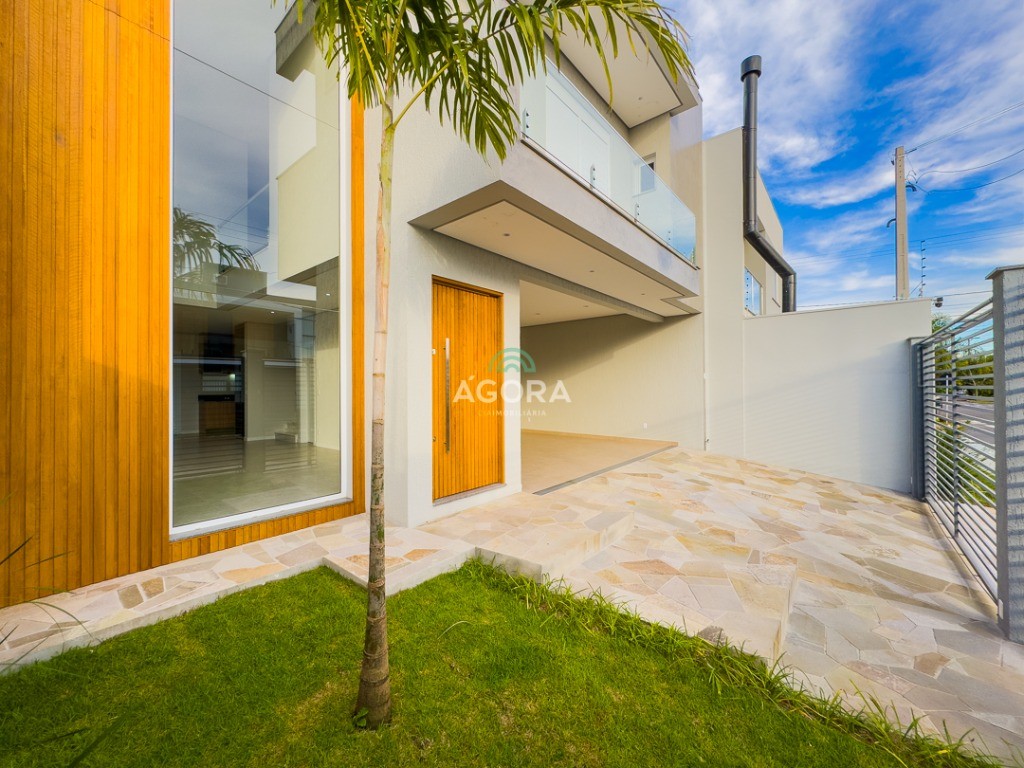 Ágora Cia Imobiliária vende: Sobrado com 3 (três) suítes, sendo a principal com banheira e sacada frontal. Este imóvel oferece conforto e privacidade para toda a família. Há ainda a opção de home office ou suíte estendida, adaptando-se facilmente ao seu estilo de vida. O térreo conta com sala de estar com lareira, cozinha e jantar integradas, proporcionando um ambiente acolhedor e fluido. Nos fundos, 1 (um) pequeno terraço integrado à sacada, churrasqueira e pátio privativo ideal para relaxar ou receber amigos. Possui lavanderia, depósito, 2 (duas) vagas de garagem cobertas e espera para carregador de carro elétrico. Acabamento impecável: Revestimento em porcelanato, esperas para split em todos os ambientes, água quente e infraestrutura para energia solar. Um sobrado que une sofisticação, eficiência e conforto em cada detalhe. Sobrado moderno arquiteto **André Pacheco** e construído por **Sérgio Fidelis**,