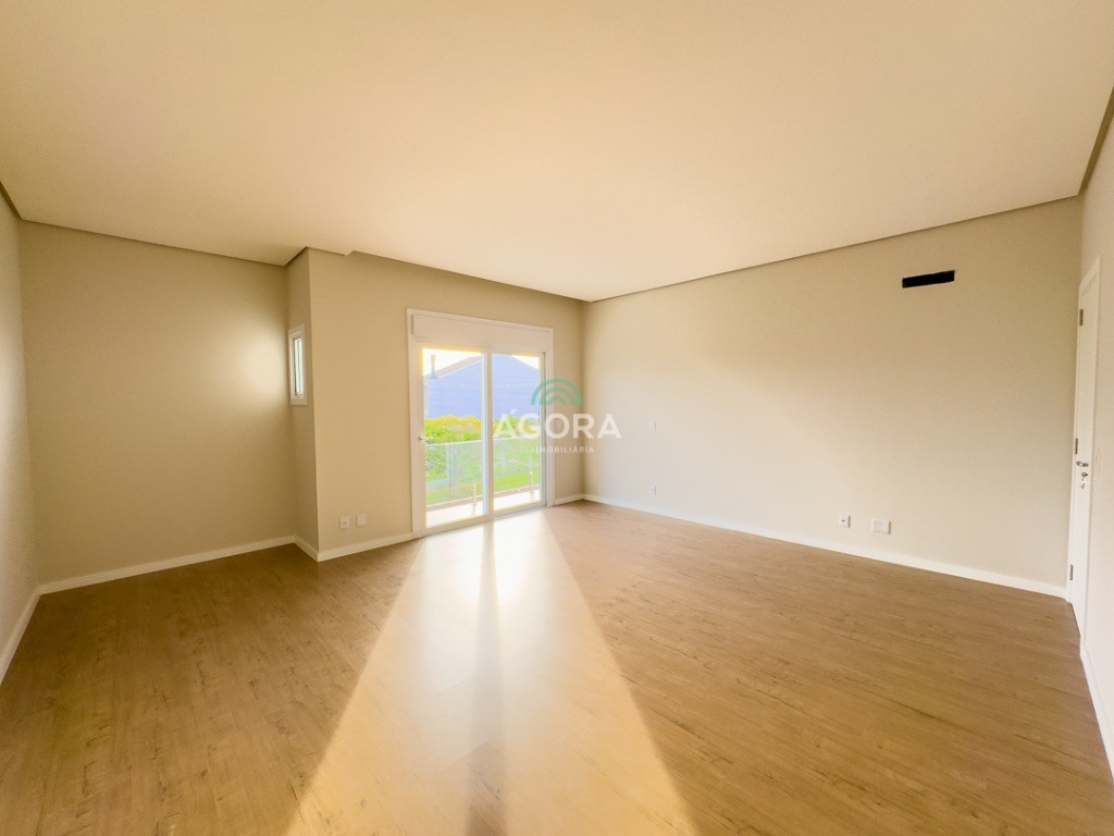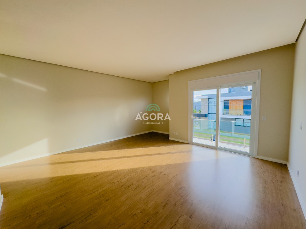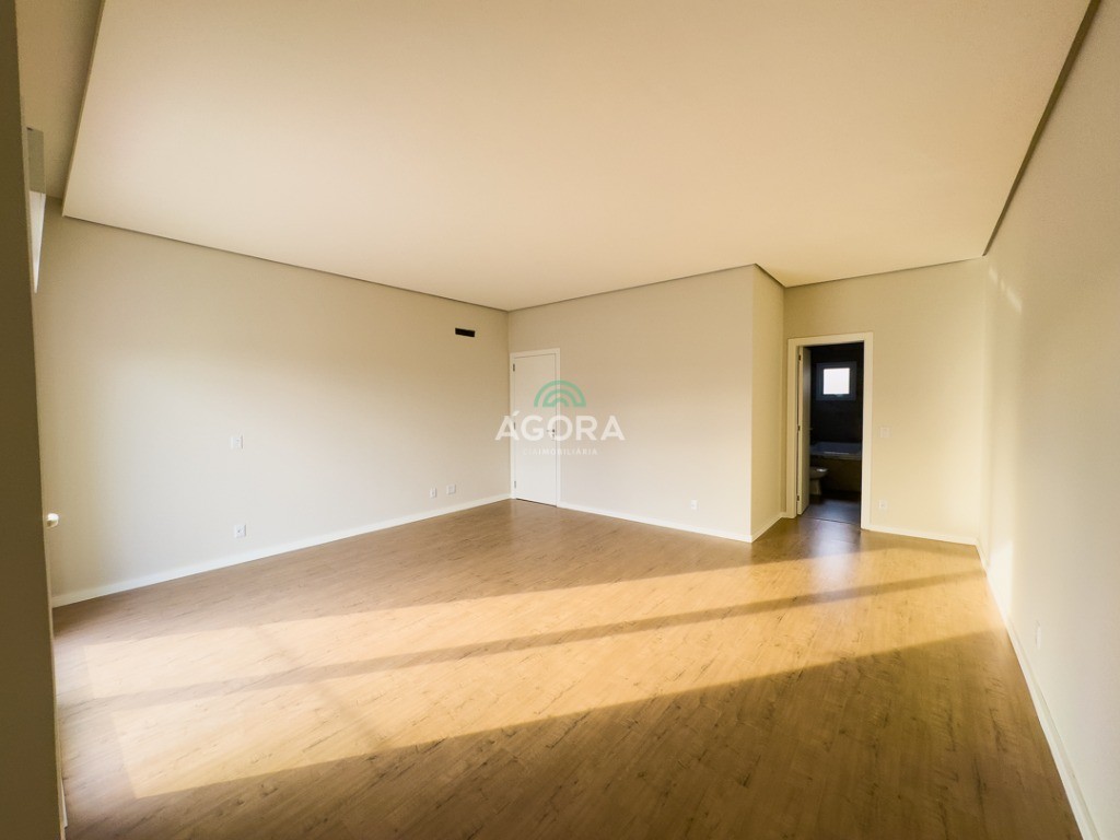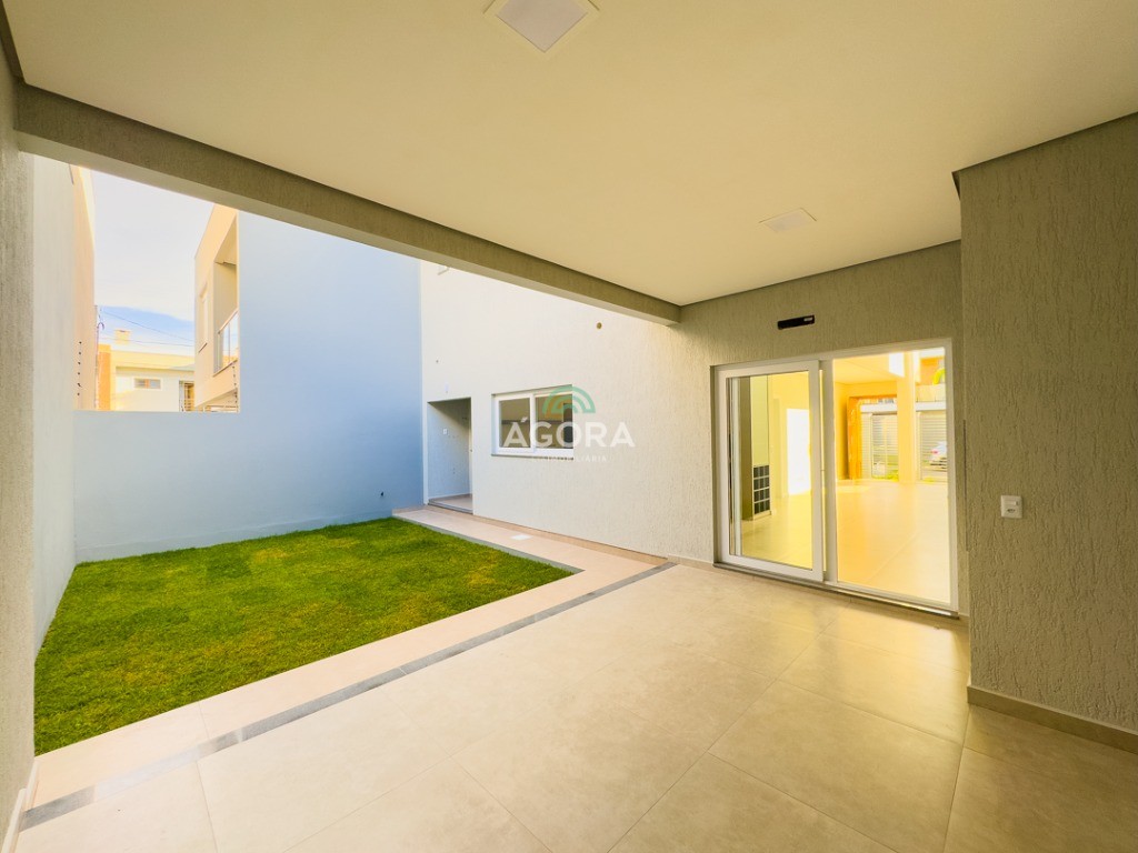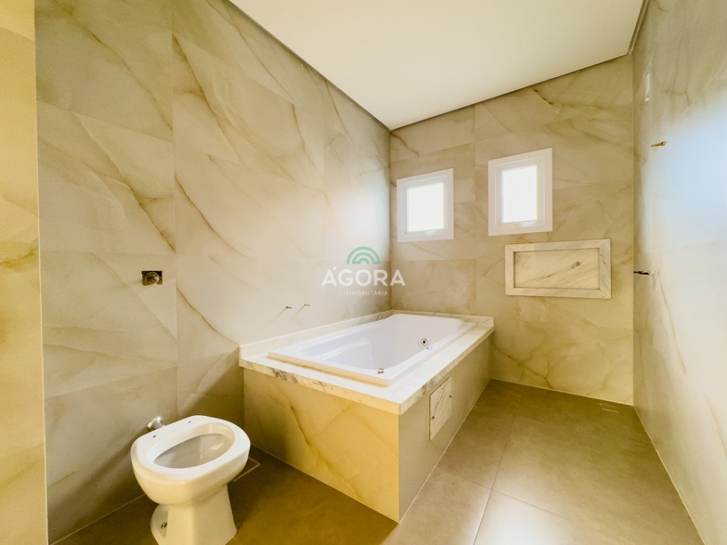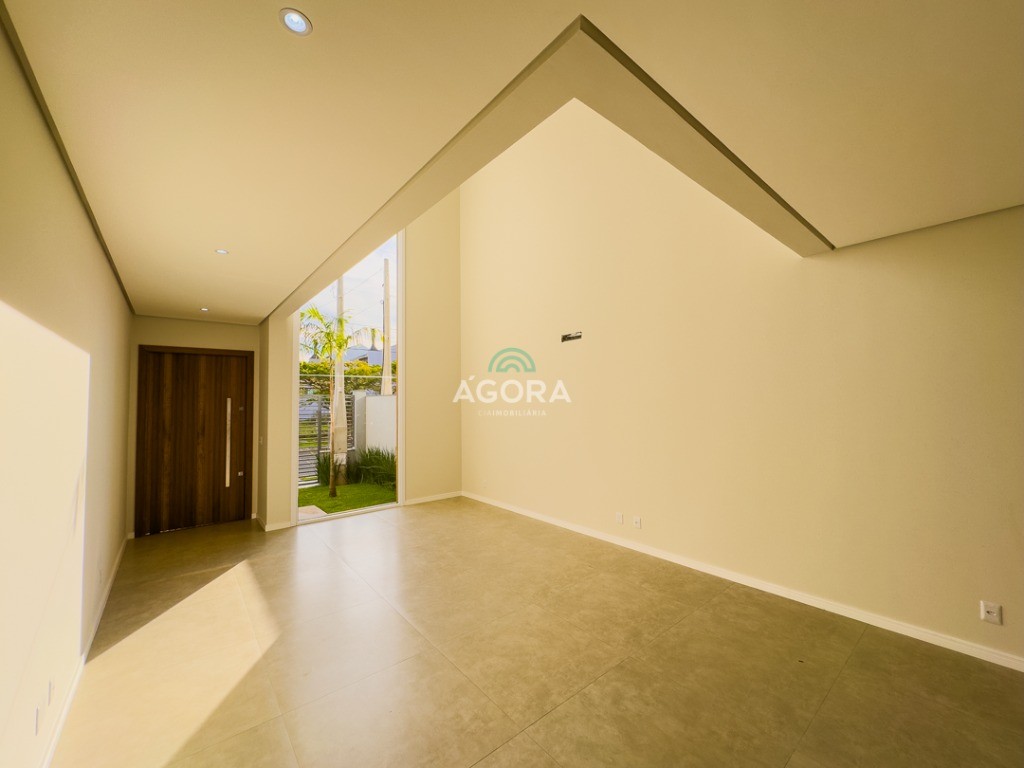 Ágora Cia Imobiliária vende: Sobrado com 3 (três) suítes, sendo a principal com banheira e sacada frontal. Este imóvel oferece conforto e privacidade para toda a família. Há ainda a opção de home office ou suíte estendida, adaptando-se facilmente ao seu estilo de vida. O térreo conta com sala de estar com lareira, cozinha e jantar integradas, proporcionando um ambiente acolhedor e fluido. Nos fundos, 1 (um) pequeno terraço integrado à sacada, churrasqueira e pátio privativo ideal para relaxar ou receber amigos. Possui lavanderia, depósito, 2 (duas) vagas de garagem cobertas e espera para carregador de carro elétrico. Acabamento impecável: Revestimento em porcelanato, esperas para split em todos os ambientes, água quente e infraestrutura para energia solar. Um sobrado que une sofisticação, eficiência e conforto em cada detalhe. Sobrado moderno arquiteto **André Pacheco** e construído por **Sérgio Fidelis**,