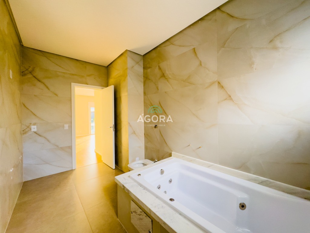 Sobrado em construção com 234,75m² privativos, 3 (três) dormitórios sendo uma suíte com banheira de hidromassagem, sala de estar com pé direito alto, living integrado, espera para lareira, área gourmet com churrasqueira, banheiros com piso aquecido, garagem para 2 (dois) carros, opção de piscina.