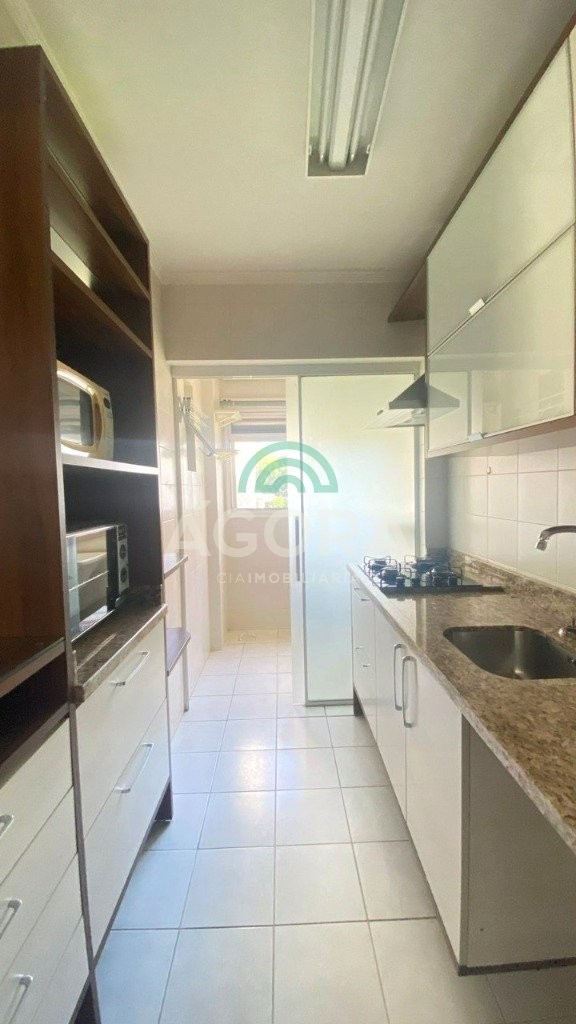 Condomínio com infraestrutura completa de lazer e segurança, com portaria 24hrs, quiosque com churrasqueira, quadra poliesportiva, interfone, piscina, playground, sala fitness e salao de festas. Com localização privilegiada, próximo aos principais comércios, restaurantes e escolas. Excelente apartamento com 76m2 , composto por sala estar/jantar integradas, sacada com churrasqueira integrada fechada em vidro, cozinha planejada com armários e equipada com fogão cooktop, 3 (tres) dormitórios, todos com armários sob medida, 1 (um) banheiro social com armários e box. Permanece no imóvel os móveis fixos e 2 (dois) aparelhos de ar condicionado. Possui 2 vagas de garagem.
