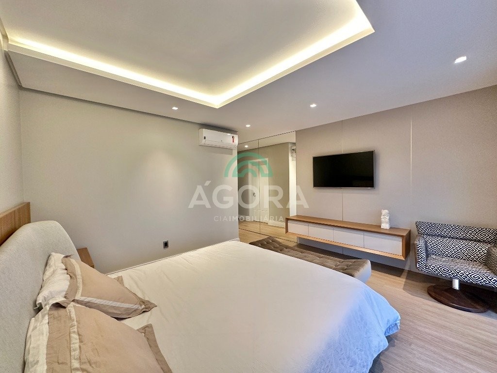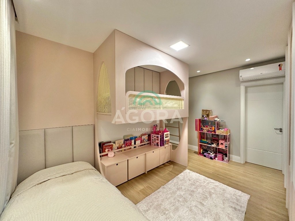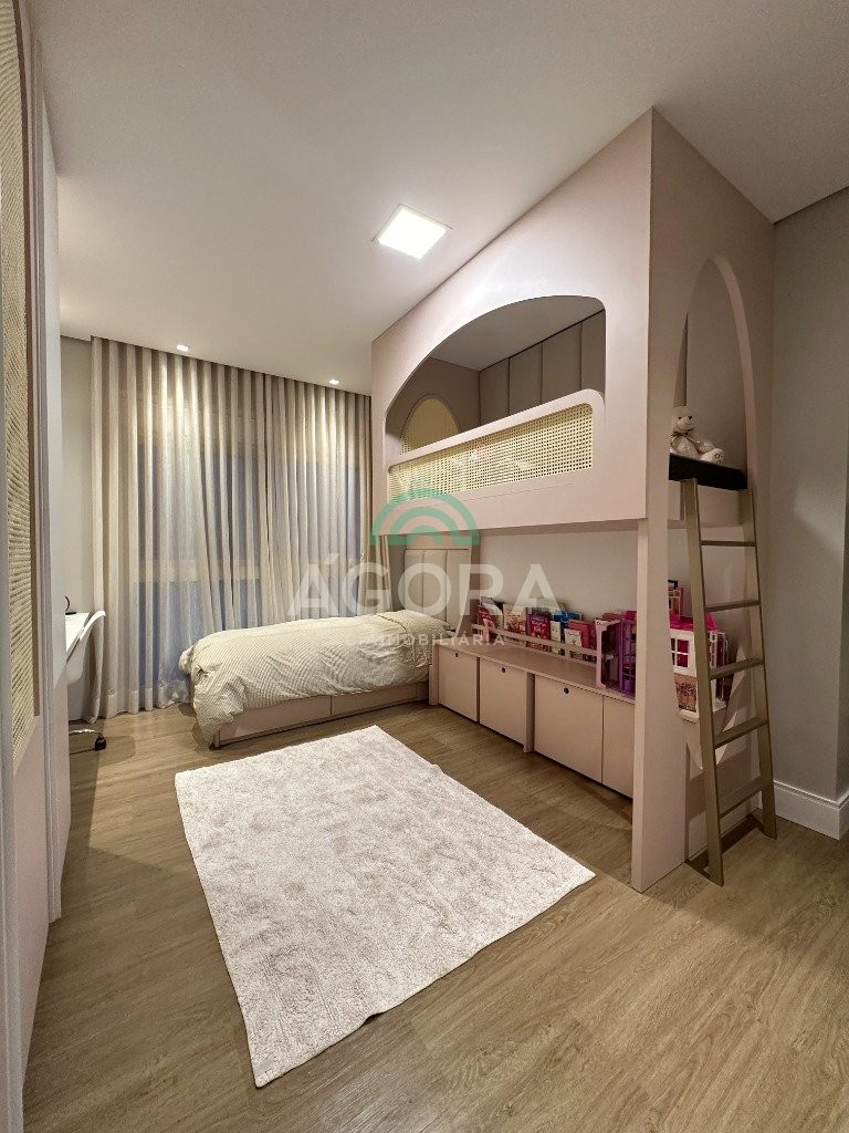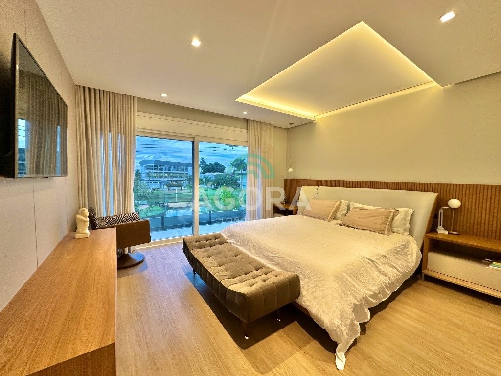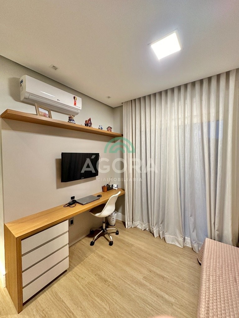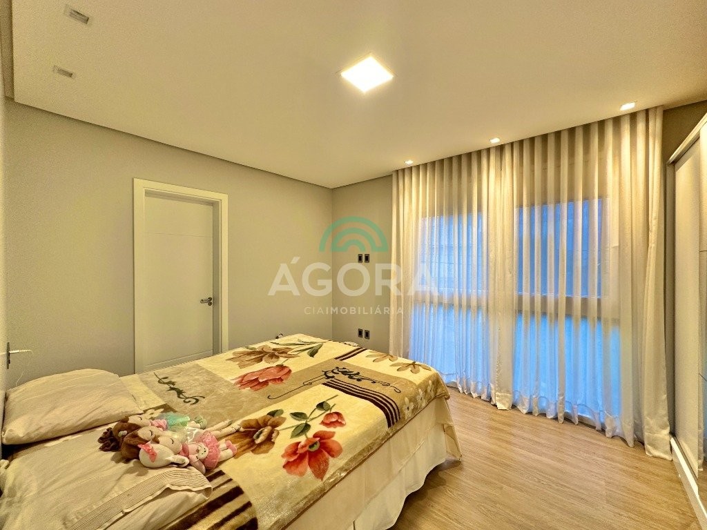 Ágora imobiliária vende: casa em condomínio fechado com 337m² em terreno de esquina. Dispõe de 4 (quatro) dormitórios, sendo 3 (três) suítes, sendo uma delas com banheira e chuveiro e cuba duplos. Living com 4 ambientes totalmente integrados, sendo cozinha com ilha. Imóvel com pé direito alto. Possui piscina com espera para aquecimento em integrada com living de convivência. O imóvel dispõe de vaga para 4 carros. Jardim com iluminação e irrigação totalmente automatizada. Excelente posição solar, sendo frente norte. Além disso, possui energia fotovoltáica e sistema de cisterna.