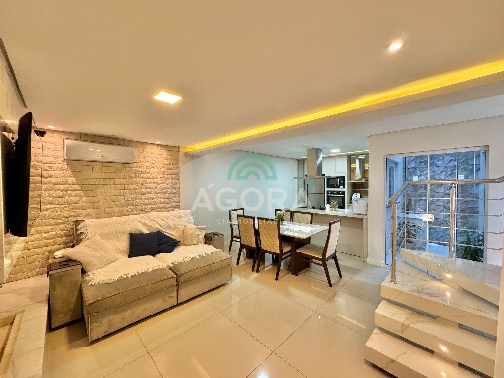 Ágora cia imobiliária vende: sobrado com 205m² privativos , sendo 3 (três) dormitórios, 1 (uma) suíte , closet , sala de estar, cozinha , lavanderia, espaço gourmet com churrasqueira , piscina aquecida e garagem coberta para 2(dois) carros e jardim de inverno. Piso porcelanato , câmeras, alarme. Ficam no imóvel todos os moveis sob medida e 4 splits aceita financiamento bancário