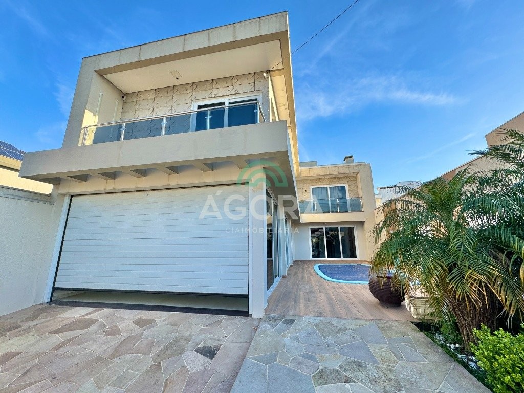 Ágora cia imobiliária vende: sobrado com 205m² privativos , sendo 3 (três) dormitórios, 1 (uma) suíte , closet , sala de estar, cozinha , lavanderia, espaço gourmet com churrasqueira , piscina aquecida e garagem coberta para 2(dois) carros e jardim de inverno. Piso porcelanato , câmeras, alarme. Ficam no imóvel todos os moveis sob medida e 4 splits aceita financiamento bancário