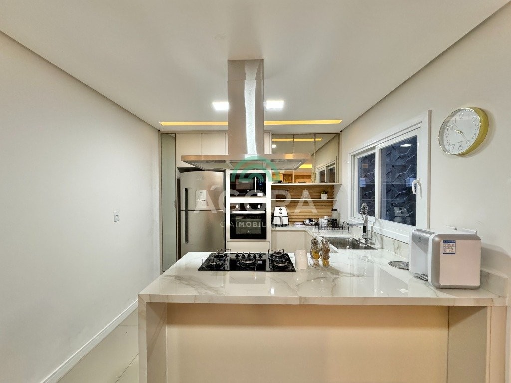 Ágora cia imobiliária vende: sobrado com 205m² privativos , sendo 3 (três) dormitórios, 1 (uma) suíte , closet , sala de estar, cozinha , lavanderia, espaço gourmet com churrasqueira , piscina aquecida e garagem coberta para 2(dois) carros e jardim de inverno. Piso porcelanato , câmeras, alarme. Ficam no imóvel todos os moveis sob medida e 4 splits aceita financiamento bancário