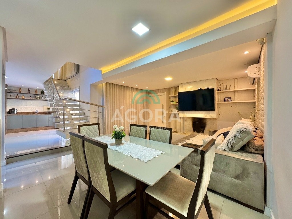 Ágora cia imobiliária vende: sobrado com 205m² privativos , sendo 3 (três) dormitórios, 1 (uma) suíte , closet , sala de estar, cozinha , lavanderia, espaço gourmet com churrasqueira , piscina aquecida e garagem coberta para 2(dois) carros e jardim de inverno. Piso porcelanato , câmeras, alarme. Ficam no imóvel todos os moveis sob medida e 4 splits aceita financiamento bancário