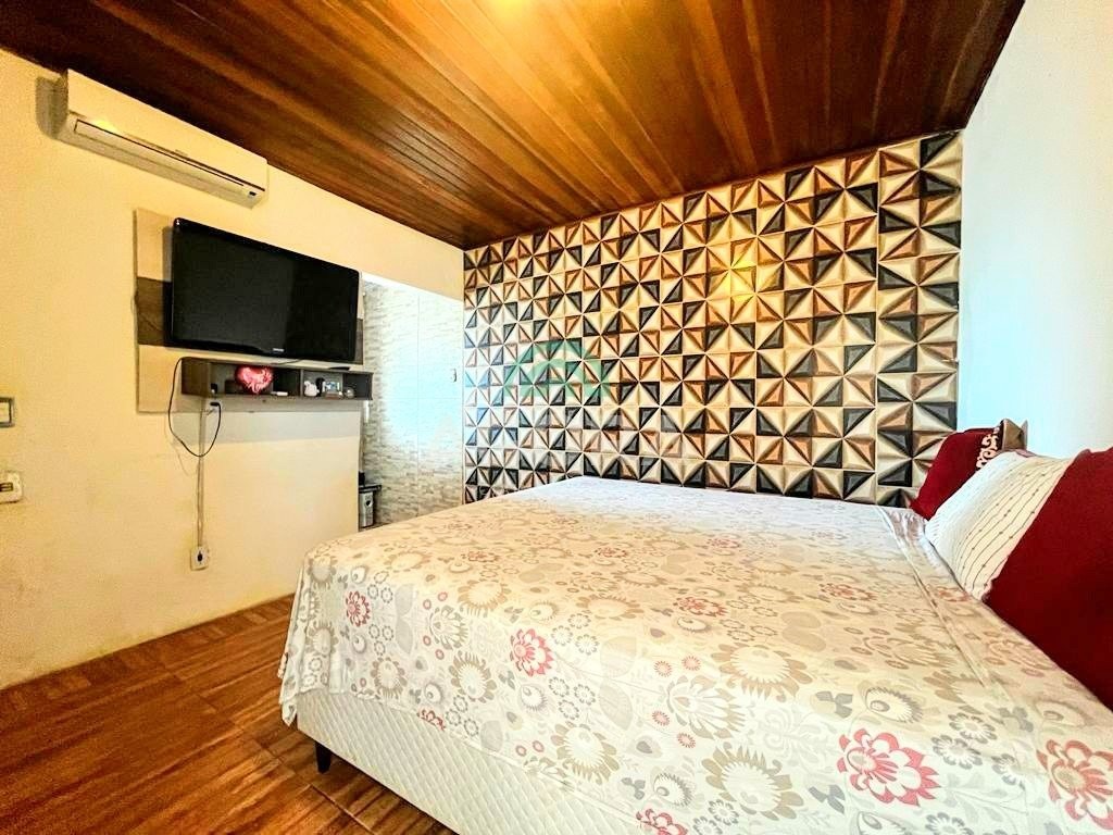 Casa térrea em alvenaria, com 100m² de área construída, possui 2 (dois) dormitórios sendo 1 (uma) suíte, sala, cozinha, banheiro social, despensa, área de serviço, área de churrasqueira, semi-mobiliada, pátio, piscina e espaço para 4 (quatro) carros, toda murada. Localizada próximo a comércios locais, avenida santos ferreira e ao parkshopping.