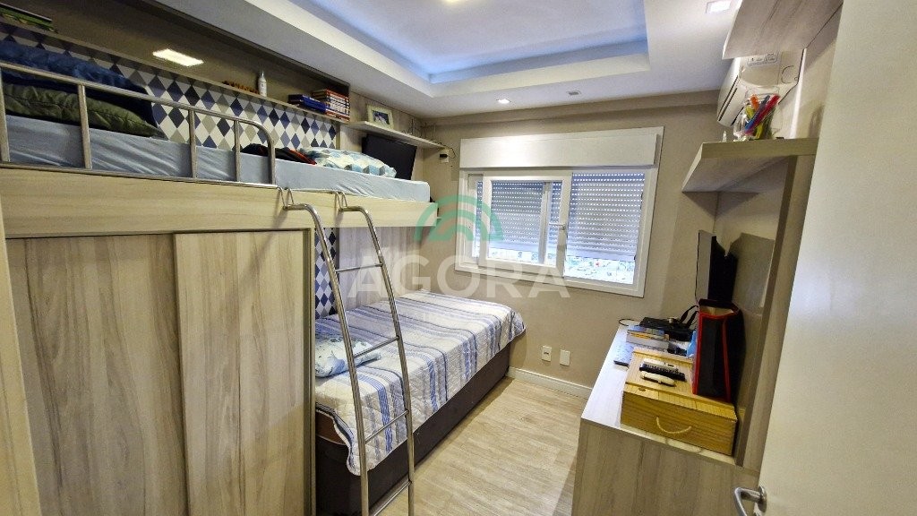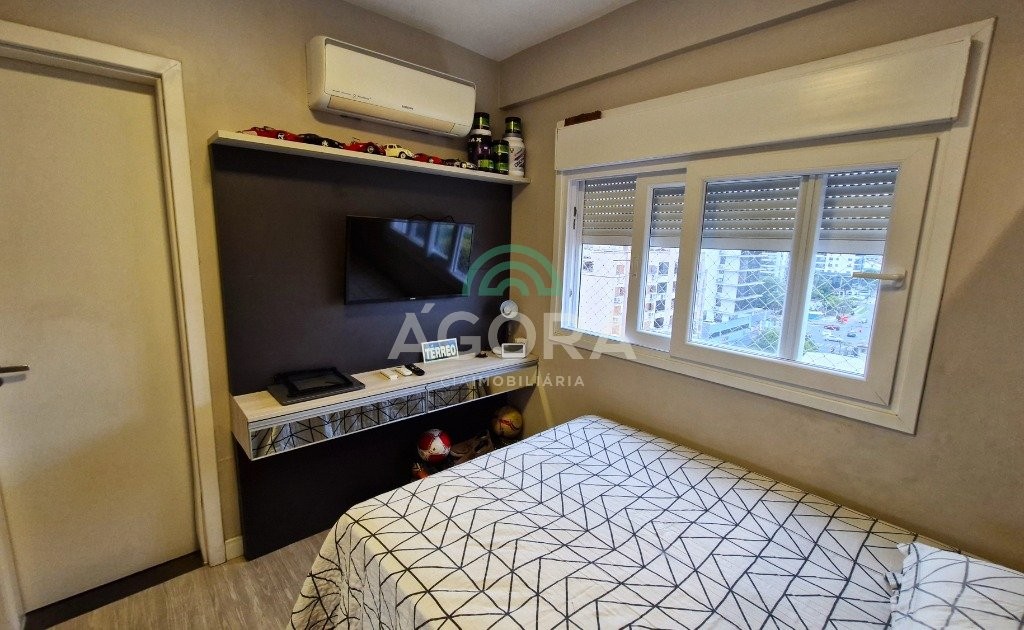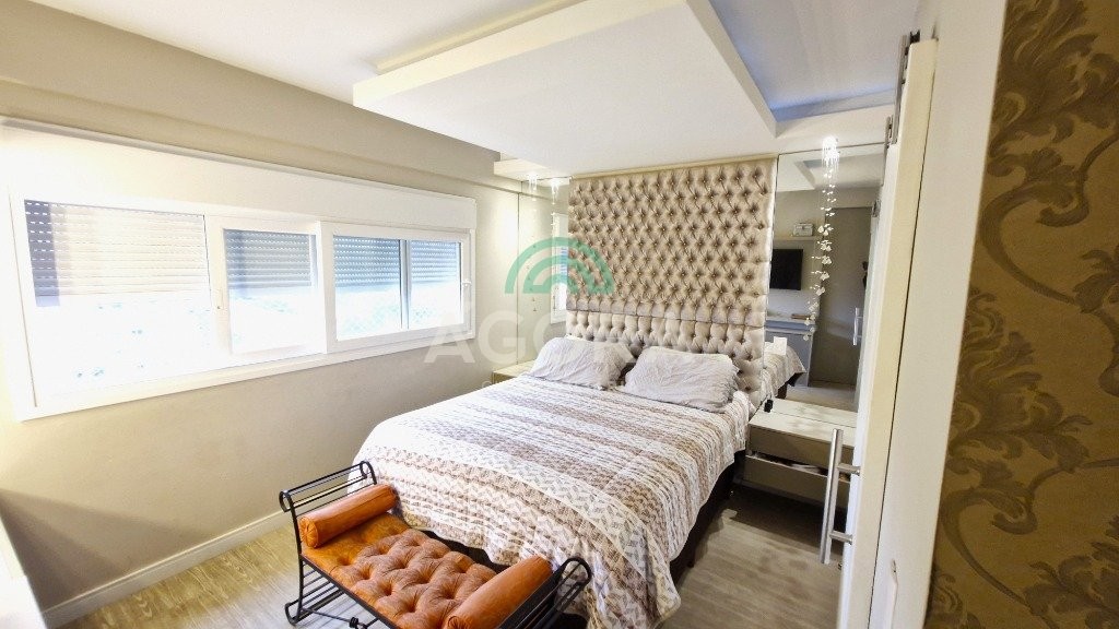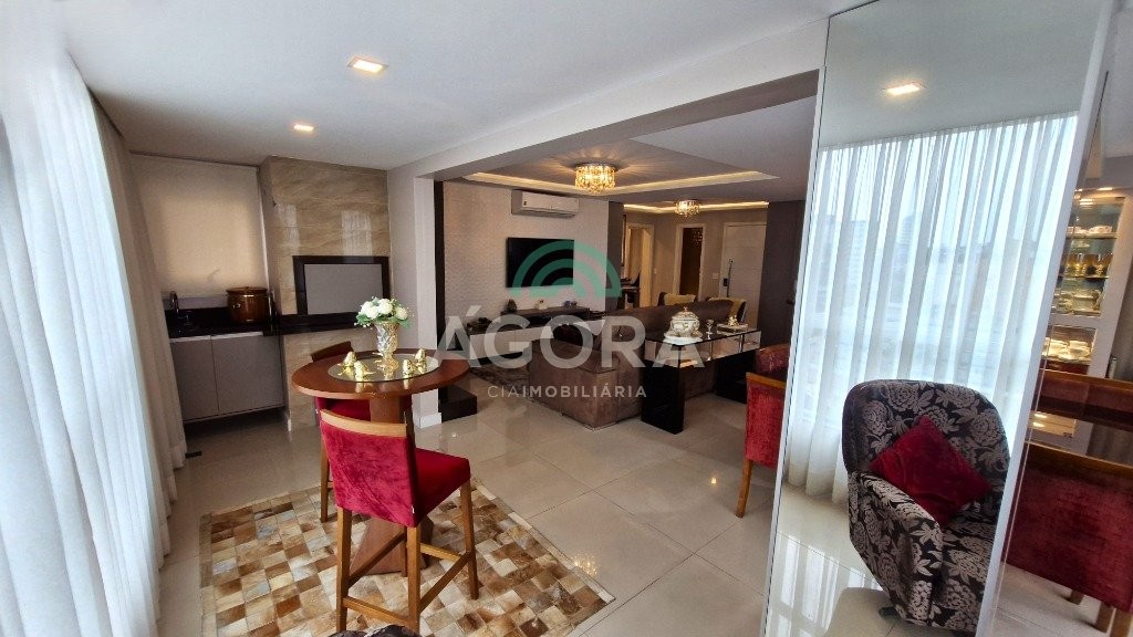 Prédio oferece salão de festas equipado com mini play para a criançada, sala fitness, piscinas adulto e infantil, interfones, sistema de câmeras, gás central e 2 elevadores. Apartamento com 128m², 3 (três) dormitórios com 2 (duas) suíte com hidromassagem e closet e os demais dormitórios dividem uma suíte americana, living 3 (três) ambientes, mobiliado, lavabo, churrasqueira, lareira, cozinha planejada, área de serviço, vaga para 2 (dois) carros. Todos móveis planejados da marca finger, pedras em mármore, luminárias e lustres, tetos em rebaixe e demais detalhes de excelente qualidade. Todos ambientes climatizados. Prédio oferece salão de festas equipado com mini play para a criançada, sala fitness, piscinas adulto e infantil, interfones, sistema de câmeras, gás central e 2 elevadores. Próximo de escola, supermercado, farmácia, pet shop, restaurantes, cafeterias e comércio em geral, 500 metros do parkshopping. Fácil acesso para deslocamento para br 116, cachoeirinha e demais localidades.
