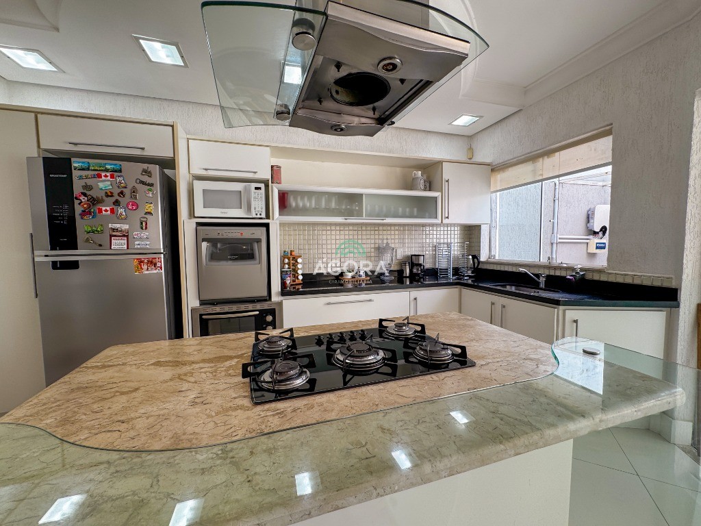 Sobrado de 359m² privativos, com 3 (três) dormitórios com suíte, uma das suítes com banheira de hidromassagem, todos os dormitórios com closet , sala de estar e jantar, cozinha, lavabo, lavanderia, espaço gourmet com churrasqueira e piscina , possui sacada em todos os dormitórios. Possui placas solar para energia. Fica finamente mobiliada.