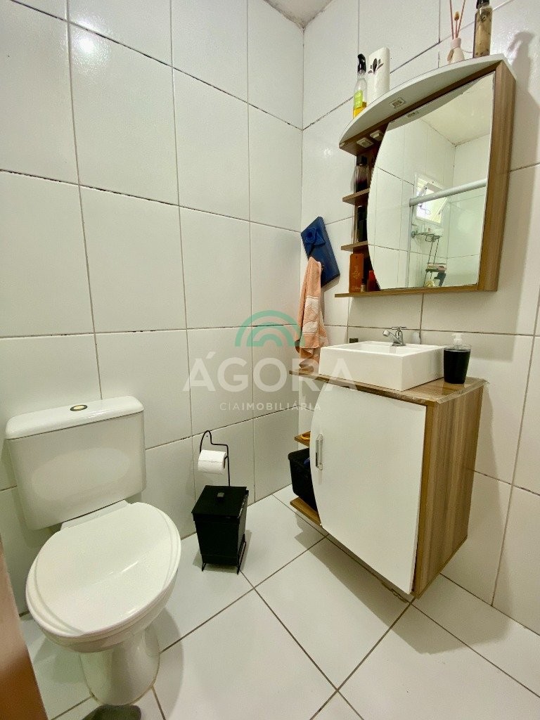 Casa em condomínio fechado com 2 (dois) dormitórios, sala de estar, jantar, cozinha, área gourmet integrada com a área se serviço, 1 (um) banheiro, pátio nos fundos, 2 (duas) vagas de garagem lado a lado. Ficam os móveis da cozinha, banheiro, roupeiro do quarto casal. Condomínio com infraestrutura; portaria, playground e salão de festas. Localizada próximo a escola e comércios em geral. Aceita financiamento e fgts