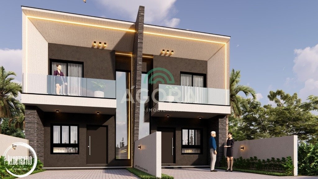 Sobrado com 128m² privativos, 3(três) dormitórios com sacada, sendo 1(uma) suíte, banheiro social, living integrado, cozinha com churrasqueira, área de serviço, lavabo, excelente iluminação natural no interior da casa, aberturas de pvc preto vaga para 2(dois) carros.