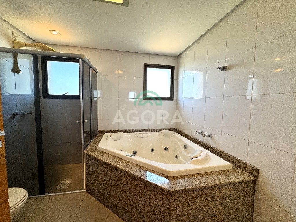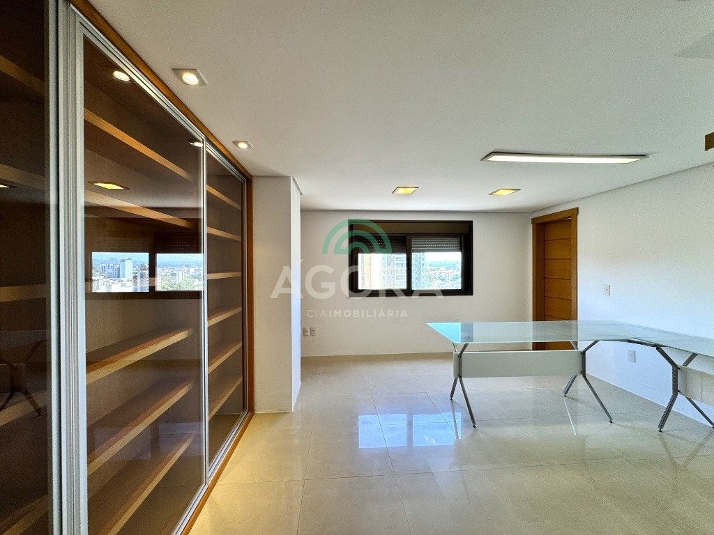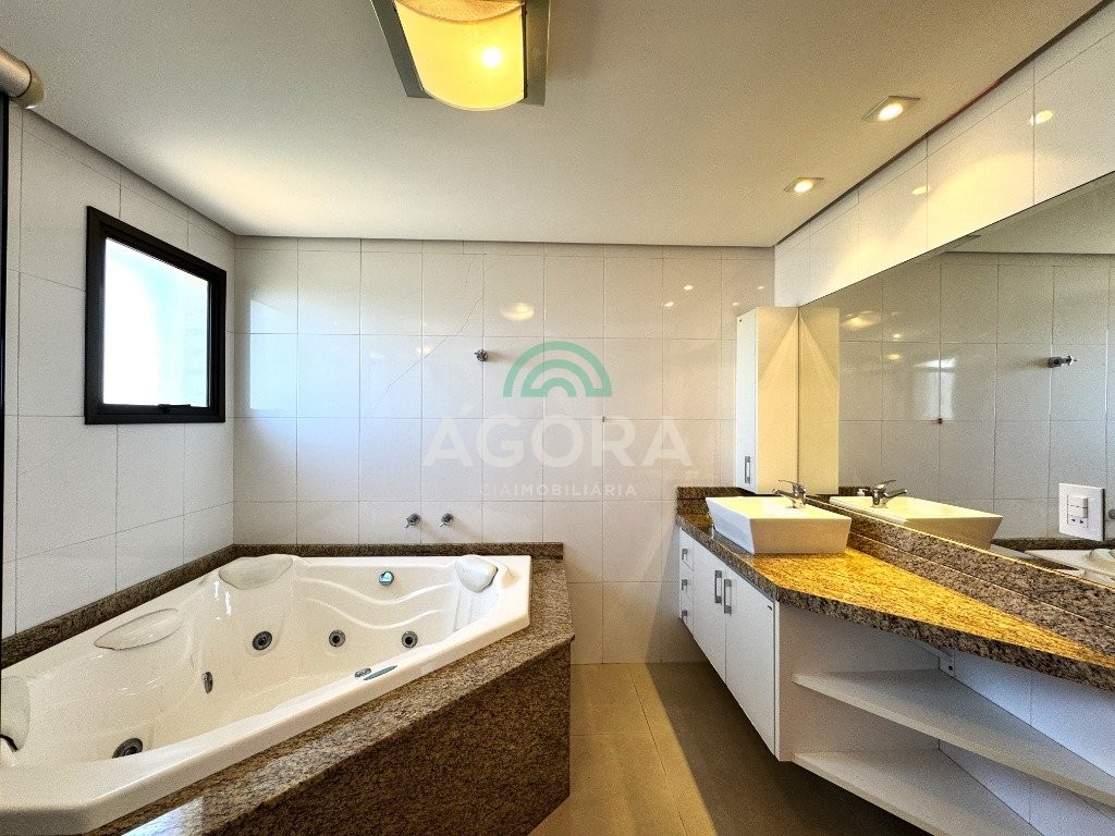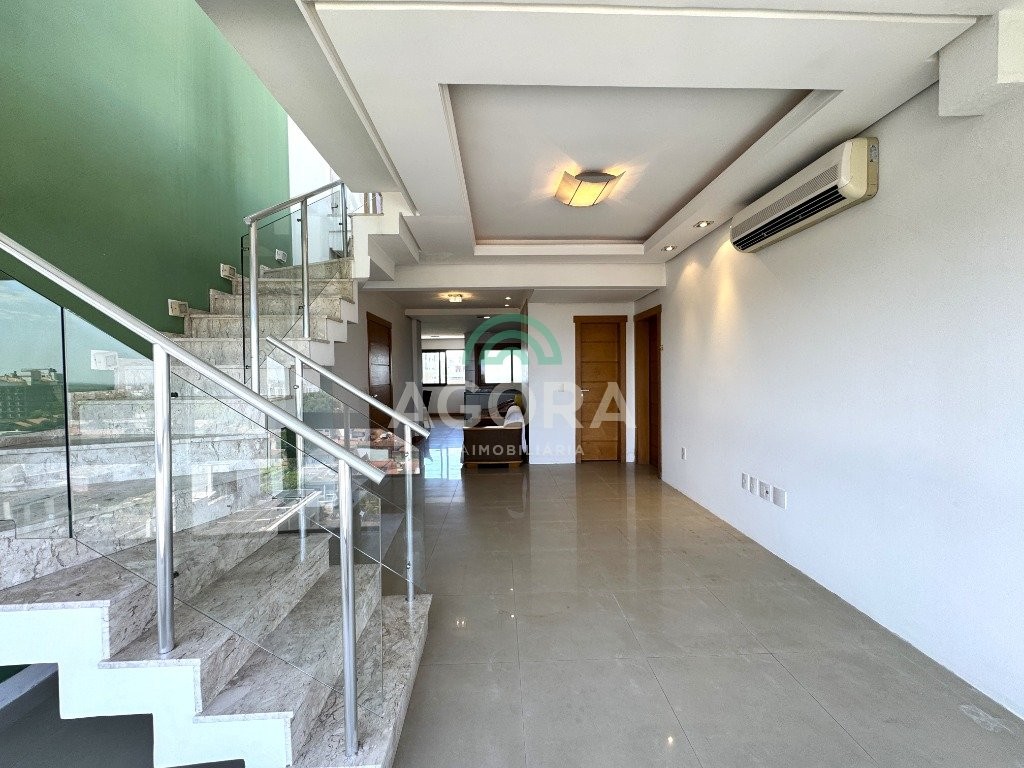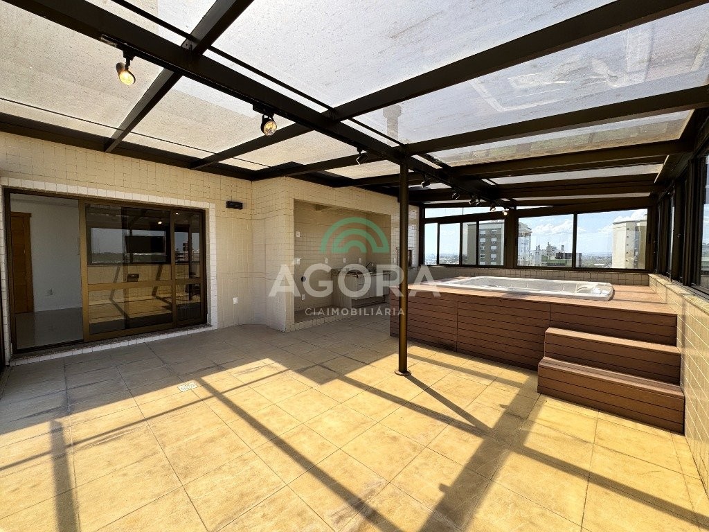 Cobertura duplex com 303m² privativos no centro. Imóvel dispõe de 4 (quatro) dormitórios, sendo duas amplas suítes e uma dela com banheira de hidromassagem. O primeiro andar possui 03 (três) dormitórios, sala de estar e jantar integradas, lavabo, lavanderia e cozinha com área para churrasco. Segundo andar dispõe de entrada independente. Possui uma suíte, lavabo, sala ampla, bem como área gourmet com churrasqueira e piscina, totalmente coberta, excelente área externa com vista da cidade e vaga de garagem para 03 (três) veículos. Condomínio com portaria virtual e espaço de convivência externo com pracinha. Agende sua visita!