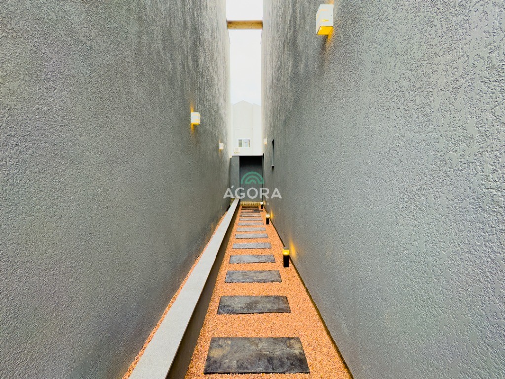 Sobrado de esquina com 138m² privativos, 3 (três) dormitórios com sacada, sendo 1 (uma) suíte, banheiro social, living integrado, cozinha com churrasqueira, área de serviço, lavabo, excelente iluminação natural no interior da casa, aberturas de pvc preto, vaga para 2 (dois) carros.