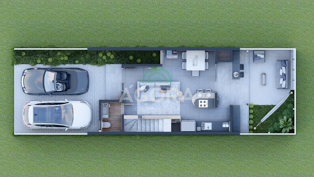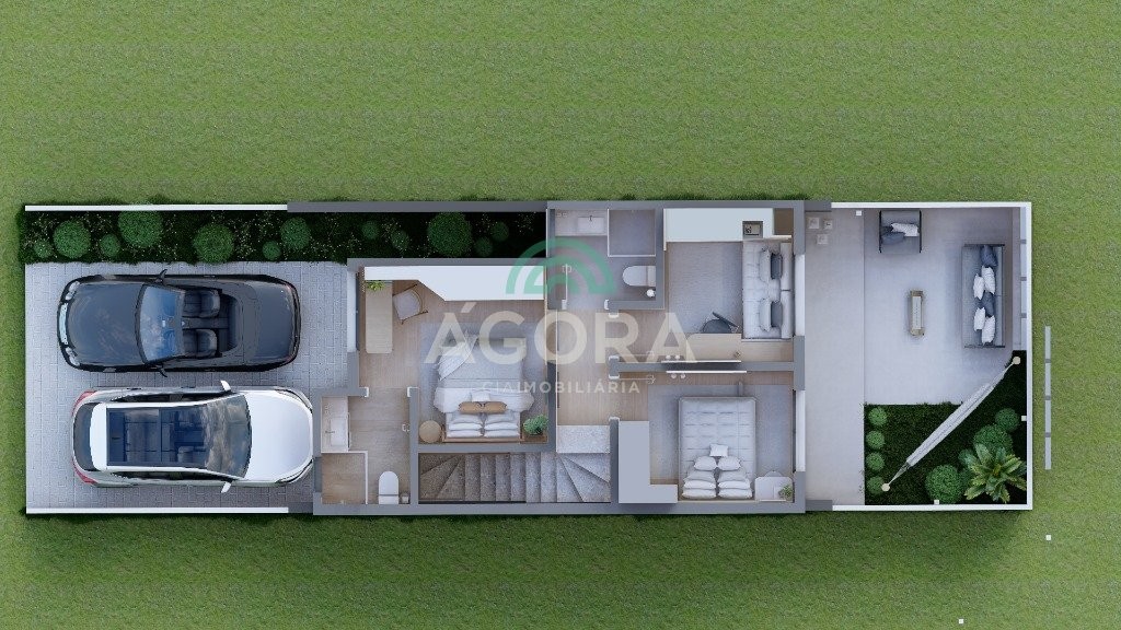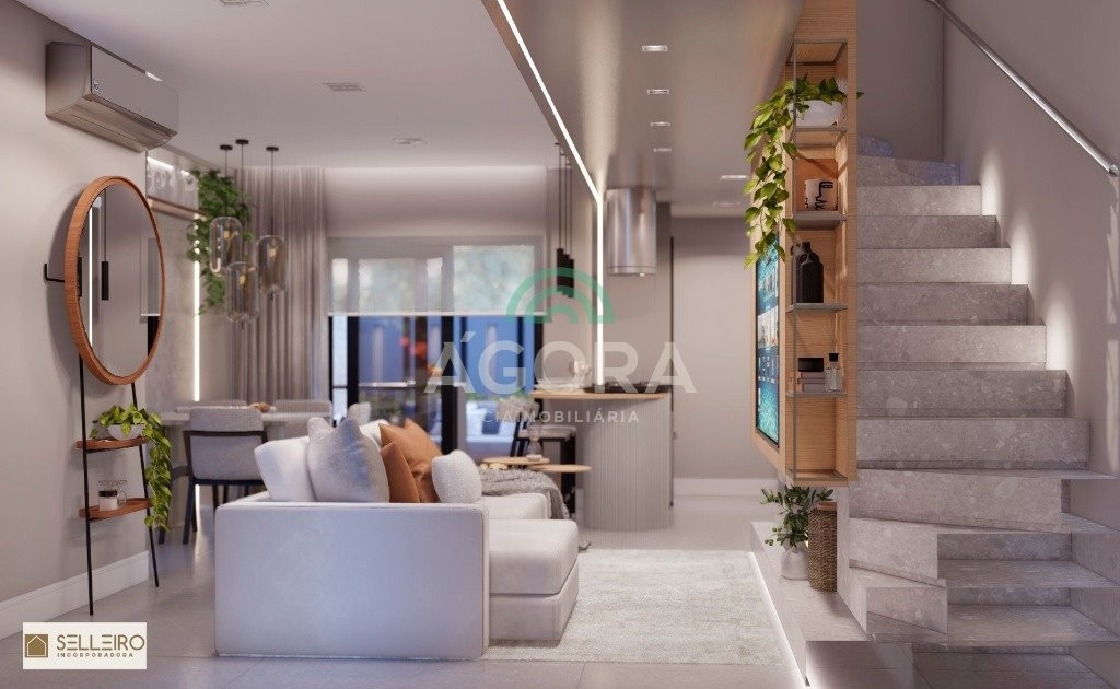 Sobrado 02 - 83,03m² este sobrado oferece conforto e modernidade, com espaços bem planejados e acabamento de qualidade: Área externa: pátio frontal com grama e vaga para 2 (dois) veículos. Pátio de fundos com brita e varanda com churrasqueira. Fechamento com gradil tubular e portão. Térreo: sala de estar e jantar integradas. Cozinha com área de serviço anexa. Lavabo e varanda de acesso. 2° pavimento: suíte com banheiro privativo. Dois dormitórios adicionais e banheiro social. Diferenciais: piso porcelanato (térreo e banheiros). Escada em granito com corrimão inox. Tubulação para água quente e preparação para split. Interruptores compatíveis com dispositivos wi-fi (alexa). Projeto de interiores padrão incluso. Perfeito para quem busca praticidade e estilo em um único lugar!