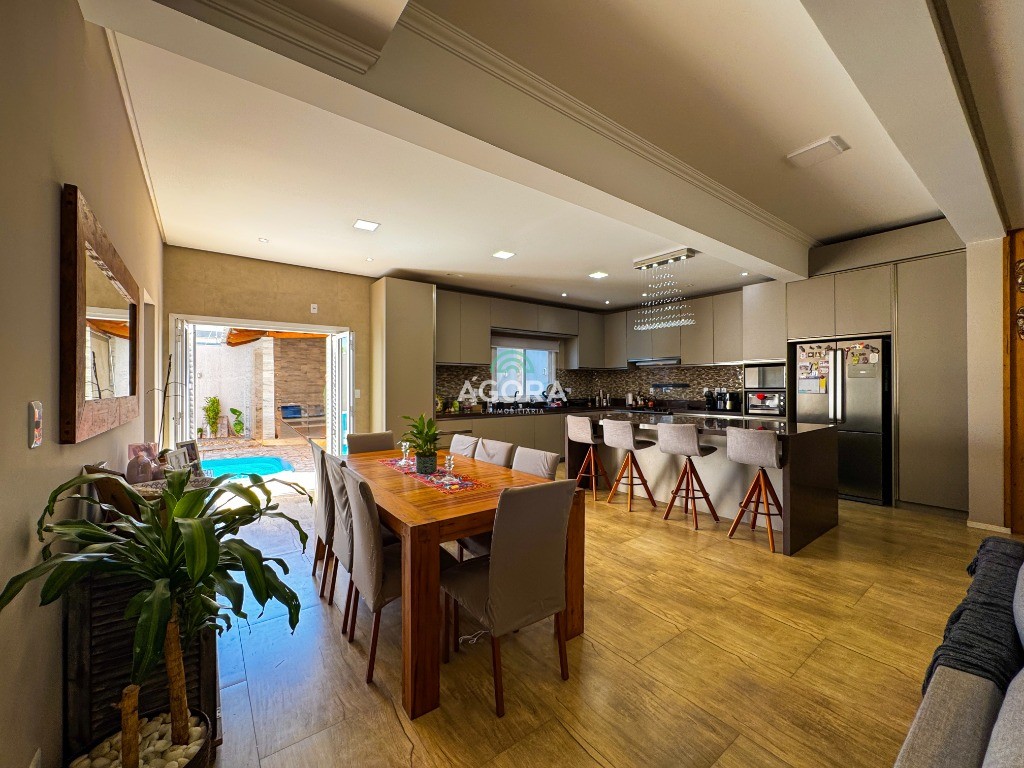 Excelente casa de esquina com 257m² de área privativa, em ótima localização na igara, com 3 (três) dormitórios sendo 1 (uma) suíte master com sacada e 1 (uma) suíte americana, amplo living com sala de estar, jantar e cozinha, área de serviço ampla, espaço gourmet com churrasqueira, cozinha e banheiro, piscina e vaga de garagem para até 3 (três) veículos. Lavanderia (com planejados),