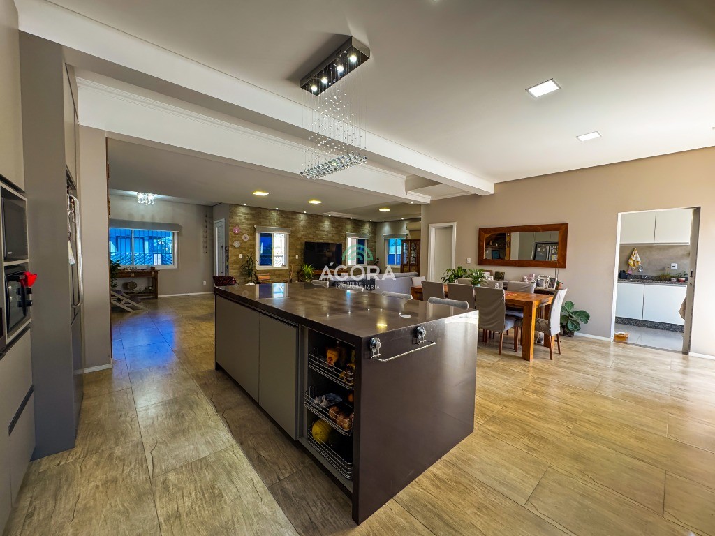sala integrada com cozinha planejada em conceito aberto, pé direito em toda casa com 3,40, fino acabamento com porcelanato e rebaixe em gesso