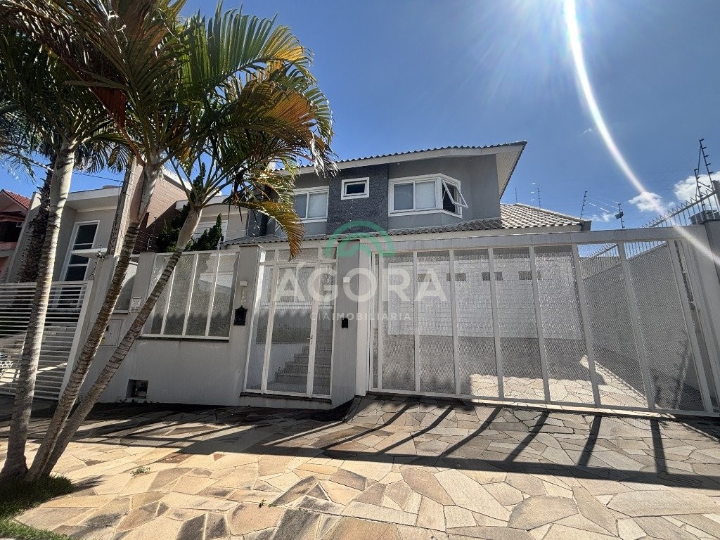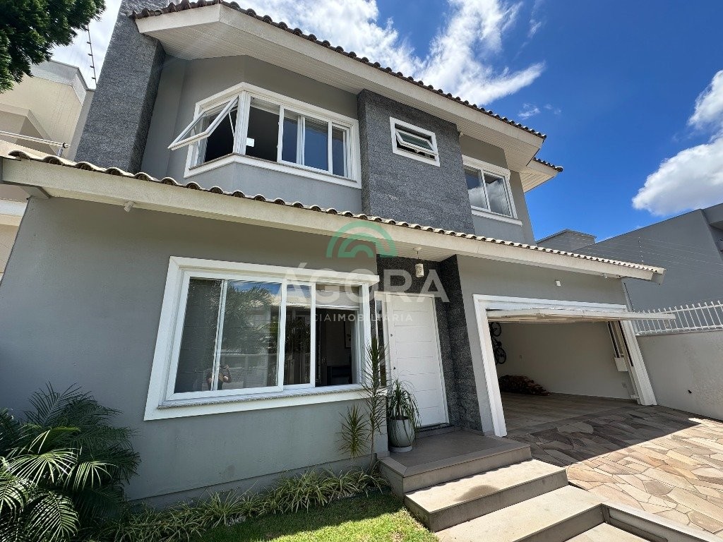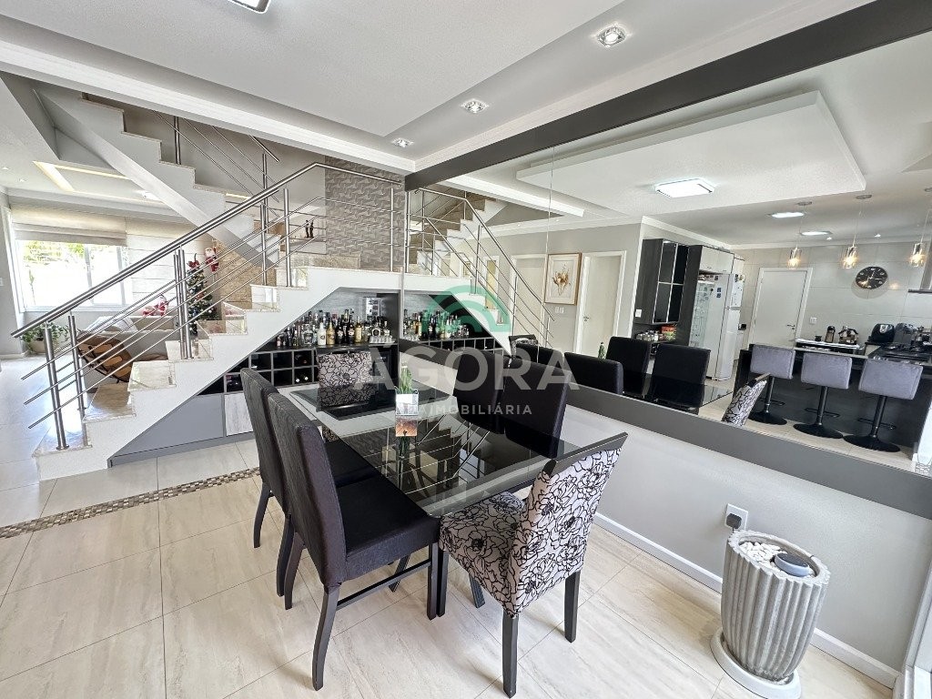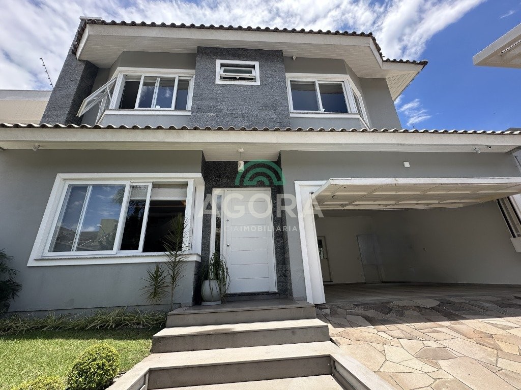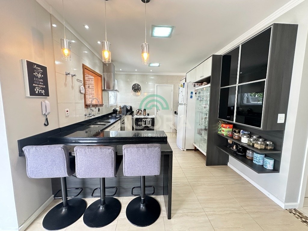 Sobrado de 220 m² privativos, com 4 (quatro) dormitórios, sendo 1 (uma) suíte ampla com closet e hidromassagem, banheiro social, amplo living para 2 (dois) ambientes com lareira, lavabo, cozinha mobiliada, lavanderia, sótão com lavabo, gabinete, aberturas em pvc, água quente, 2 (dois) aquecedores à gás sendo 1 (um) para a suíte, vagas para 4 (quatro) carros, laminado no piso superior e porcelanato no piso inferior. Ficarão todos os móveis planejados. Aquecimento solar localização privilegiada, próximo ao park canoas shopping, parque capão do corvo e comércios. Aceita dação e financiamento.