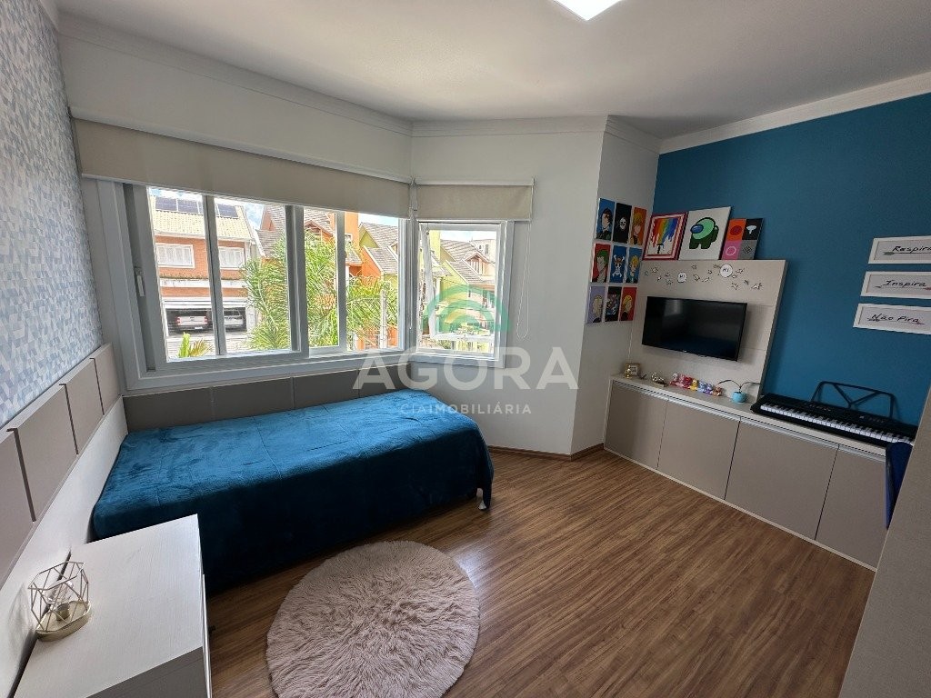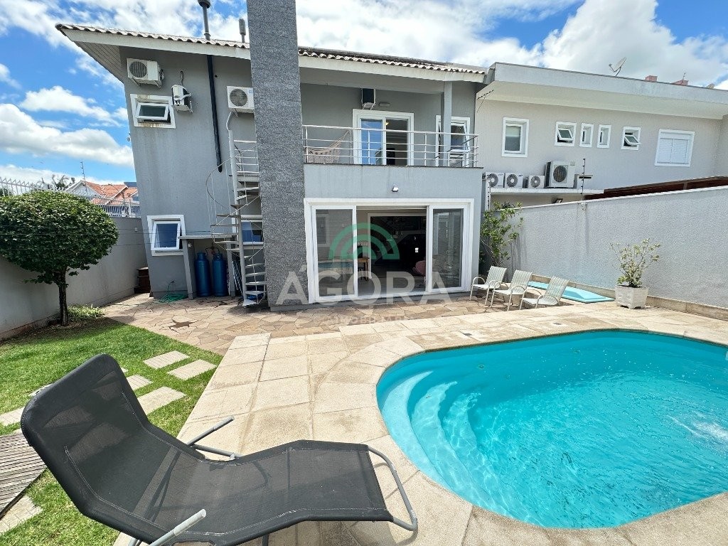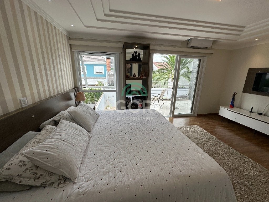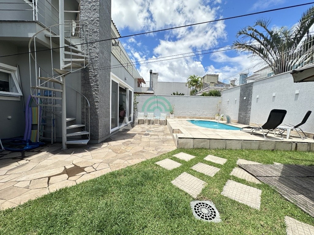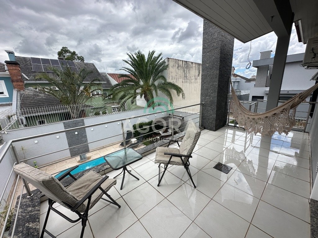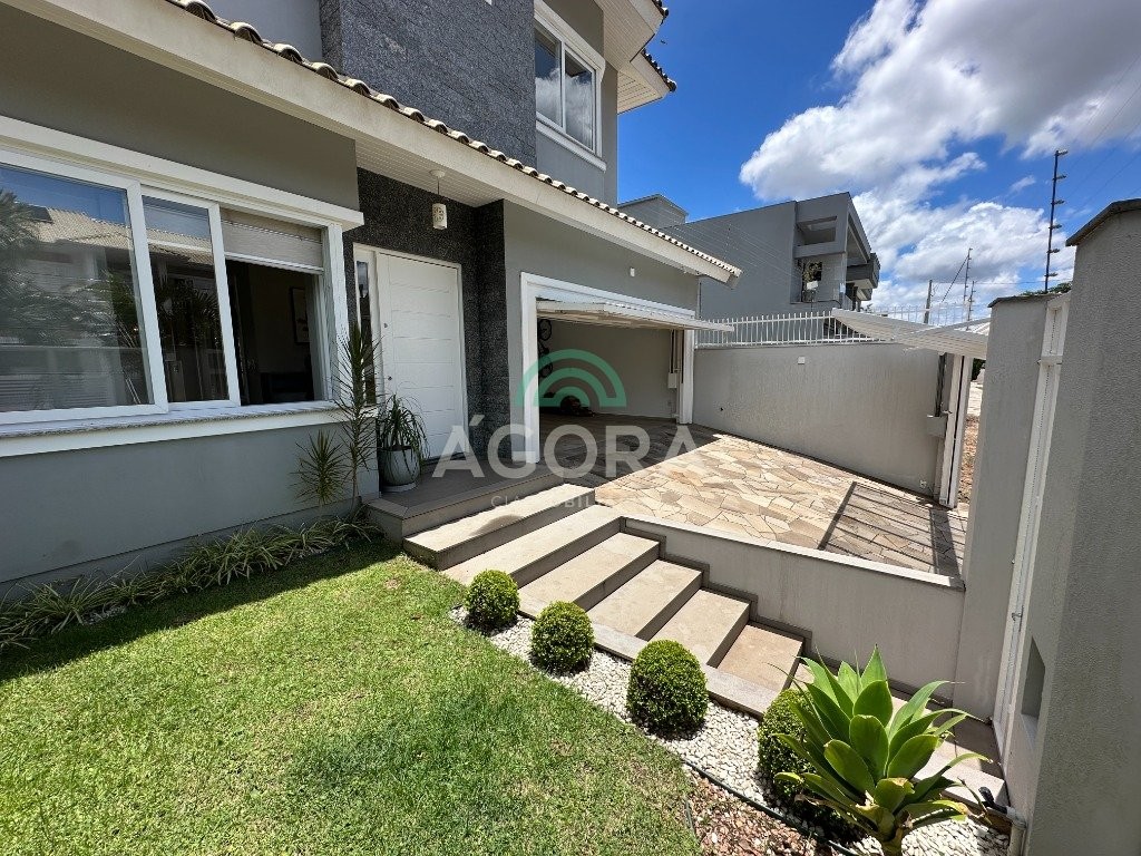 Sobrado de 220 m² privativos, com 4 (quatro) dormitórios, sendo 1 (uma) suíte ampla com closet e hidromassagem, banheiro social, amplo living para 2 (dois) ambientes com lareira, lavabo, cozinha mobiliada, lavanderia, sótão com lavabo, gabinete, aberturas em pvc, água quente, 2 (dois) aquecedores à gás sendo 1 (um) para a suíte, vagas para 4 (quatro) carros, laminado no piso superior e porcelanato no piso inferior. Ficarão todos os móveis planejados. Aquecimento solar localização privilegiada, próximo ao park canoas shopping, parque capão do corvo e comércios. Aceita dação e financiamento.