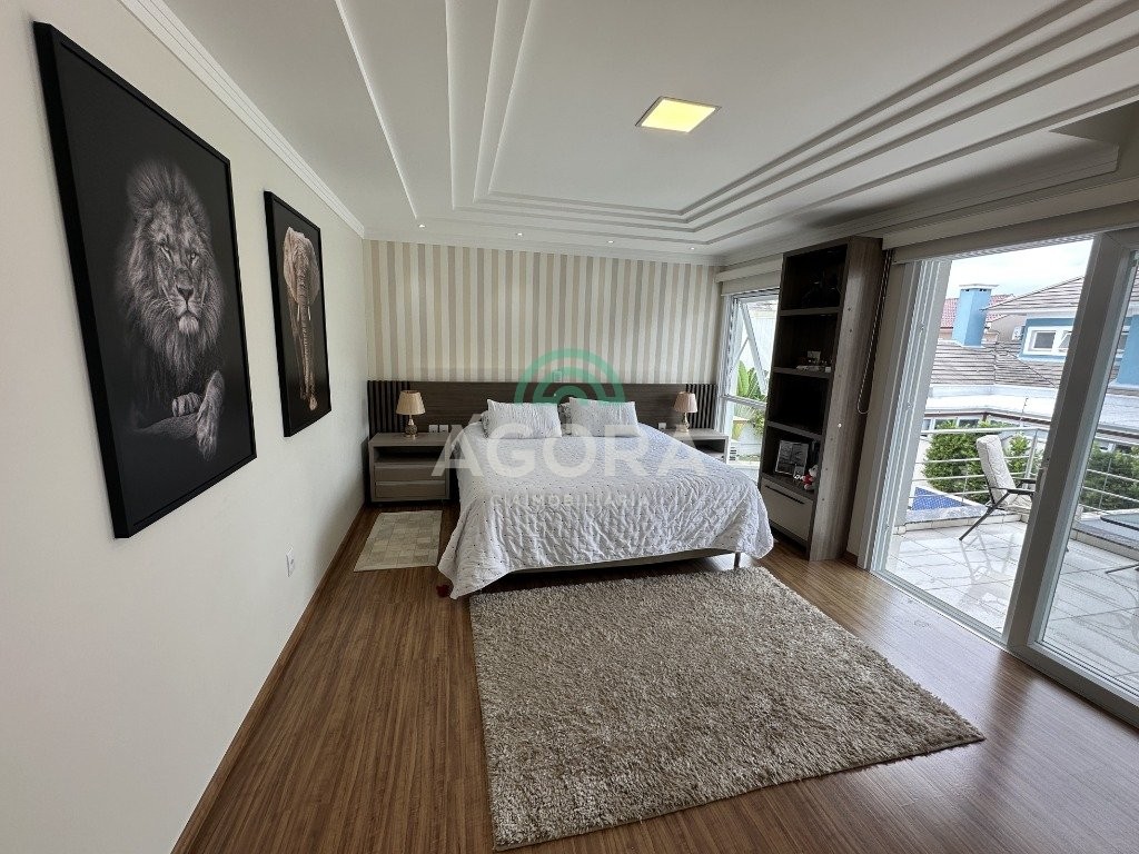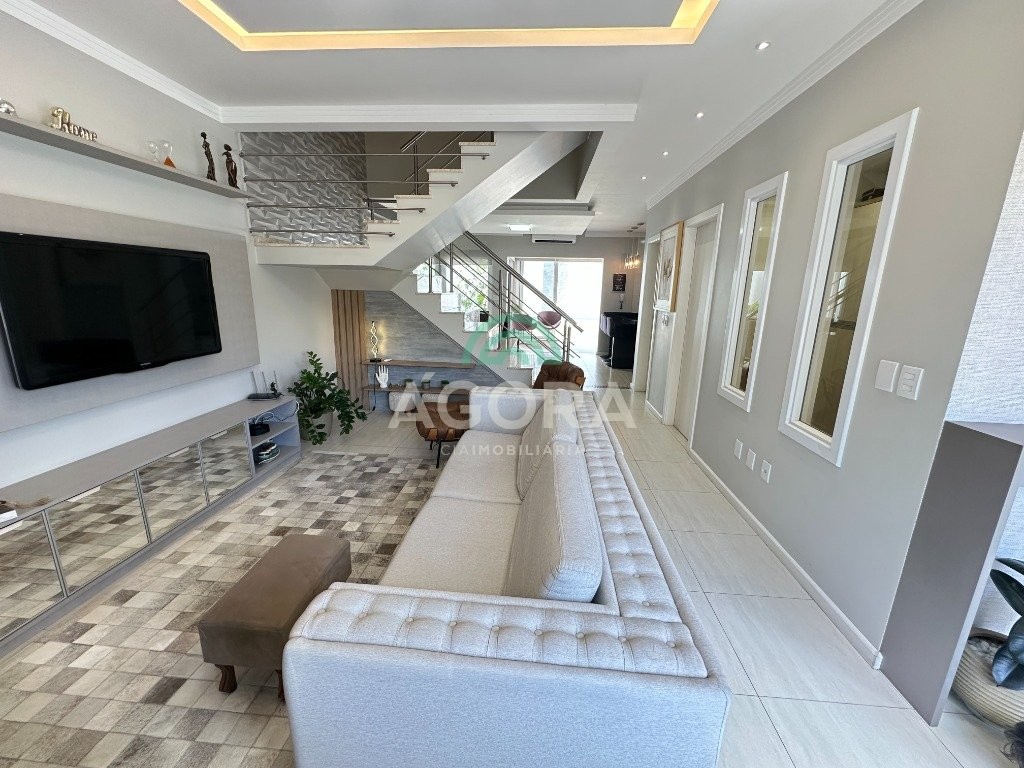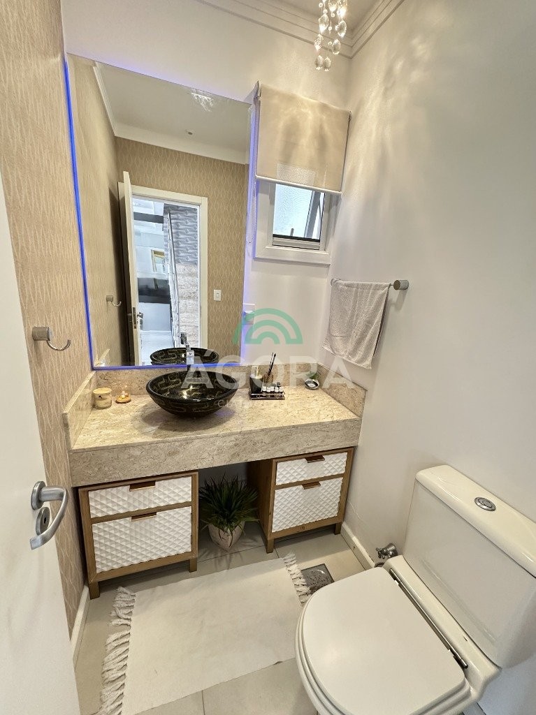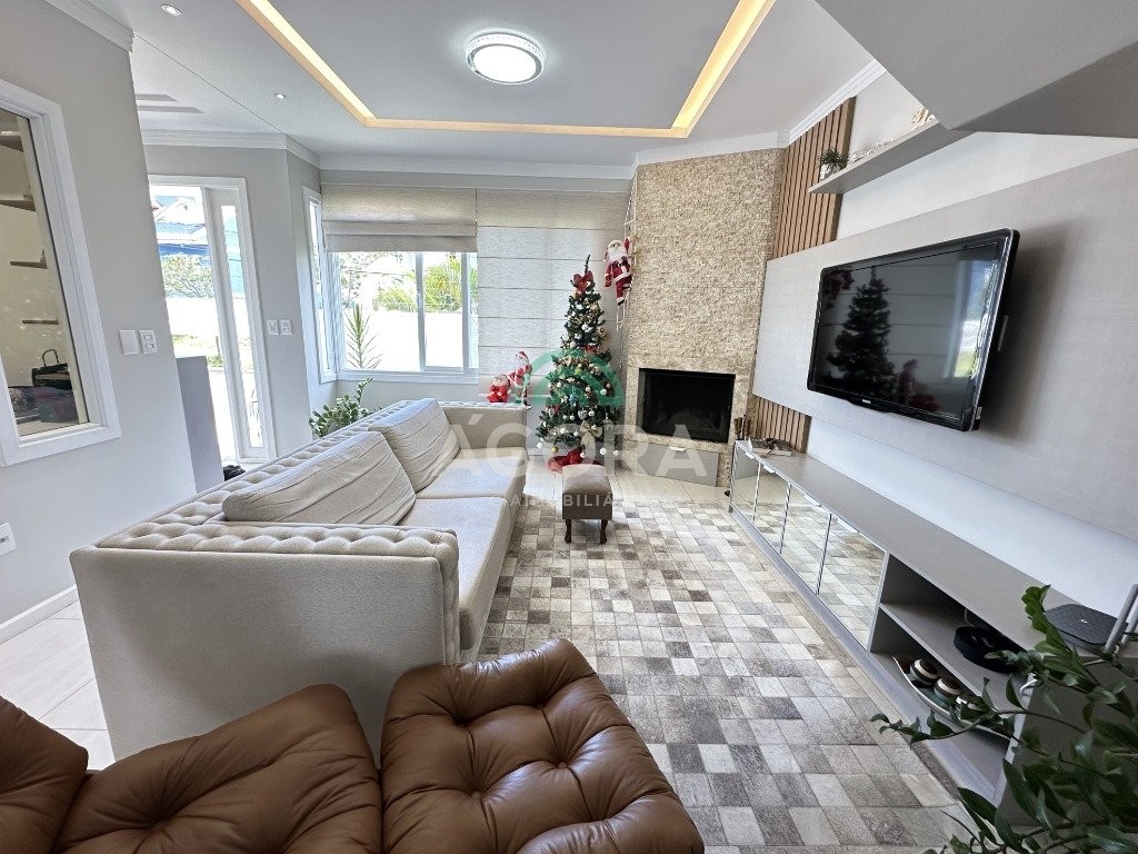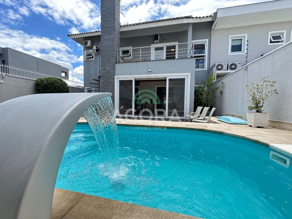 Sobrado de 220 m² privativos, com 4 (quatro) dormitórios, sendo 1 (uma) suíte ampla com closet e hidromassagem, banheiro social, amplo living para 2 (dois) ambientes com lareira, lavabo, cozinha mobiliada, lavanderia, sótão com lavabo, gabinete, aberturas em pvc, água quente, 2 (dois) aquecedores à gás sendo 1 (um) para a suíte, vagas para 4 (quatro) carros, laminado no piso superior e porcelanato no piso inferior. Ficarão todos os móveis planejados. Aquecimento solar localização privilegiada, próximo ao park canoas shopping, parque capão do corvo e comércios. Aceita dação e financiamento.