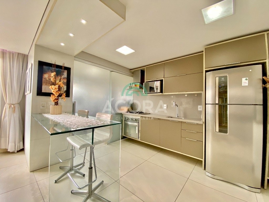 Excelente apartamento mobiliado, com 83,17m² privativos, com 2 (dois) dormitórios sendo 1 (uma) suíte com piso aquecido, banheiro social com piso também aquecido, sala de estar e jantar integradas com a cozinha montada, área de serviço ampla e arejada individualizada, janelas automatizadas e 2 (duas) vagas cobertas de estacionamento. Permanecerão no imóvel todos os móveis sob medida: cozinha, área de serviço, painel da sala, 2 (dois) splits, junker, fogão, mesa de jantar, depurador e lustres. Fácil acesso a br 116, próximo do park shopping canoas, parque getúlio vargas e comércio em geral. Ac. Financiamento.