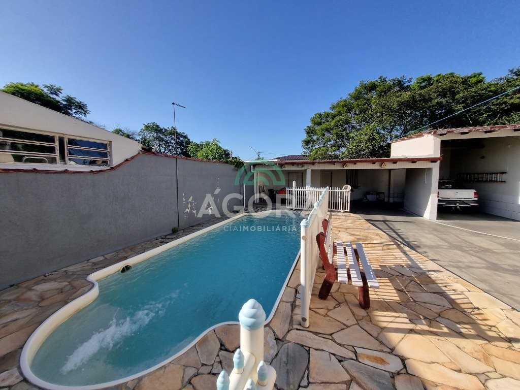 Sobrado de 344m² privativos, com 3 (três) dormitórios sendo 1 (uma) suíte, sala de estar, jantar, cozinha, despensa, lavabo, banheiro social, área com churrasqueira, espaço gourmet, pátio com piscina, sacada no escritório. Dois terrenos juntos e uma segunda casa terrea no pátio, com 2 dorm. Sala estar, sala de jantar, banheiro, área fechada com churrasqueira. Ficam todos os móveis fixos, e ar condicionado. Próximo a todos os comércios centrais: mercado carrefour, padaria e bazar.