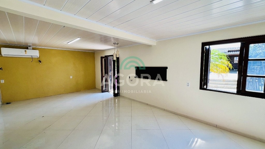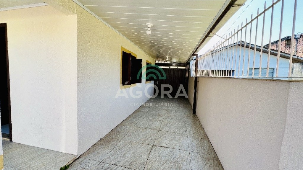 Em um terreno com 418m², possui 2 (duas) casas. A casa da frente, em alvenaria, com área privativa de 96m², é distribuída em 2 (dois) dormitórios, living com 2 (dois) ambientes, cozinha, banheiro social, área de serviço e uma ampla área gourmet com churrasqueira. A casa dos fundos, em madeira, possui aproximadamente 50 m² de área construída, distribuída em 2 (dois) dormitórios, sala, cozinha, banheiro social e uma área gourmet com churrasqueira integrada. Ambas as casas se destacam por possuírem seus ambientes equipados com ar-condicionado. O imóvel ainda conta com vaga coberta para até 3 (três) carros, piscina, jardim e pátio todo murado, com grade na frente. Localizado no bairro harmonia, a região oferece vantagens como escolas, mercados, lojas de varejo e paradas de ônibus.
