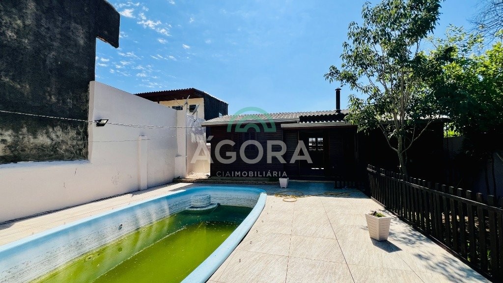 Em um terreno com 418m², possui 2 (duas) casas. A casa da frente, em alvenaria, com área privativa de 96m², é distribuída em 2 (dois) dormitórios, living com 2 (dois) ambientes, cozinha, banheiro social, área de serviço e uma ampla área gourmet com churrasqueira. A casa dos fundos, em madeira, possui aproximadamente 50 m² de área construída, distribuída em 2 (dois) dormitórios, sala, cozinha, banheiro social e uma área gourmet com churrasqueira integrada. Ambas as casas se destacam por possuírem seus ambientes equipados com ar-condicionado. O imóvel ainda conta com vaga coberta para até 3 (três) carros, piscina, jardim e pátio todo murado, com grade na frente. Localizado no bairro harmonia, a região oferece vantagens como escolas, mercados, lojas de varejo e paradas de ônibus.