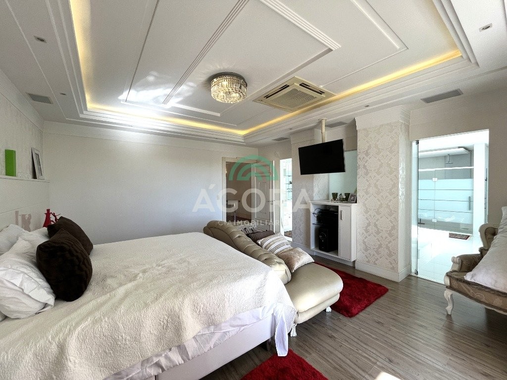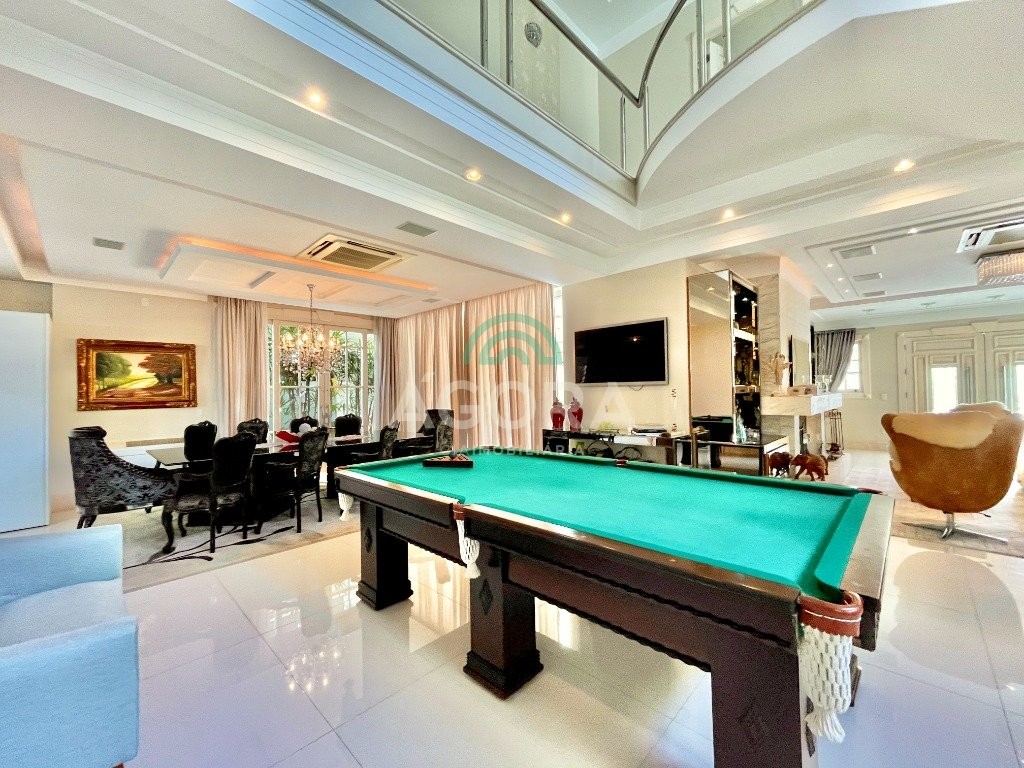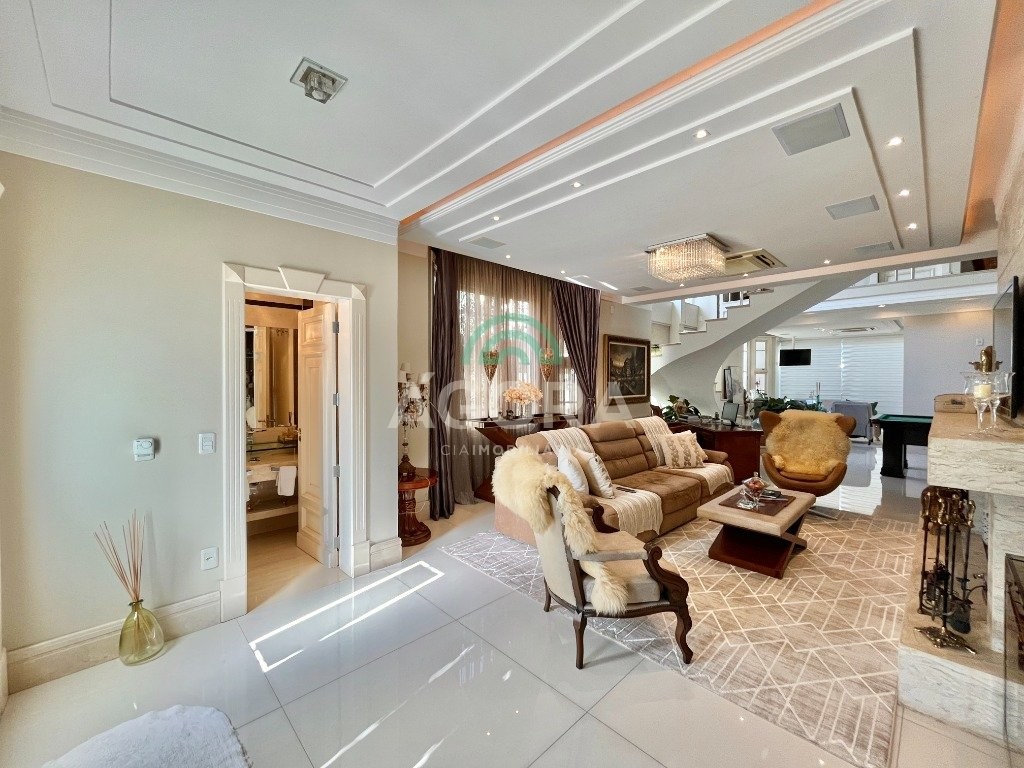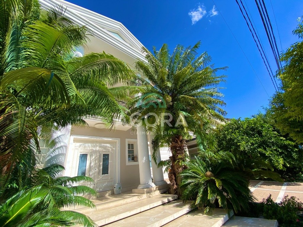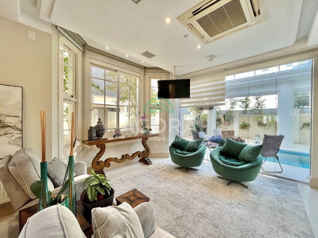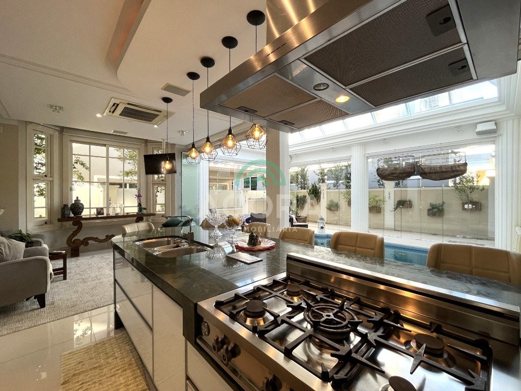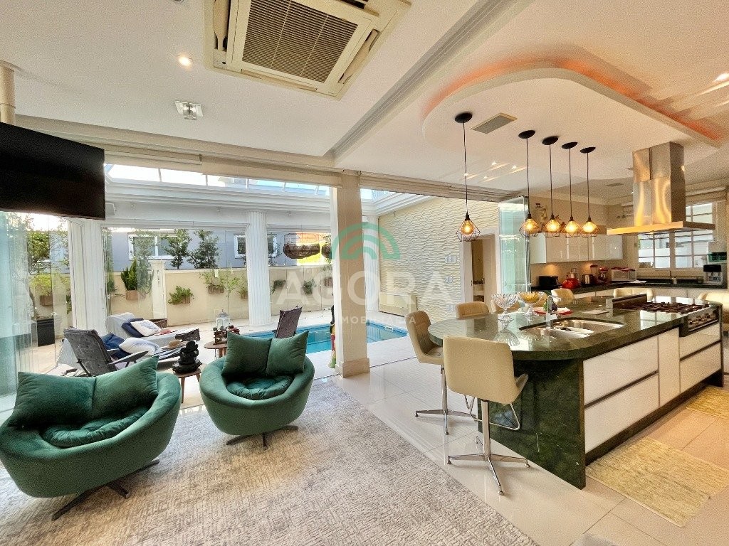 Sobrado estilo neoclássico, totalmente mobiliado e equipado, com móveis de gramado, de 586m² privativos, 3 (três) suítes, sendo 1 (uma) máster com banheira de hidromassagem e closet, sala de estar e jantar integradas com lareira, cozinha com ilha e churrasqueira gourmet, todos os ambientes com piso aquecido, área de lazer com piscina aquecida, sistema de ar central e vaga de garagem coberta para 4? (quatro) veículos, sendo 2 (dois) cobertos.
