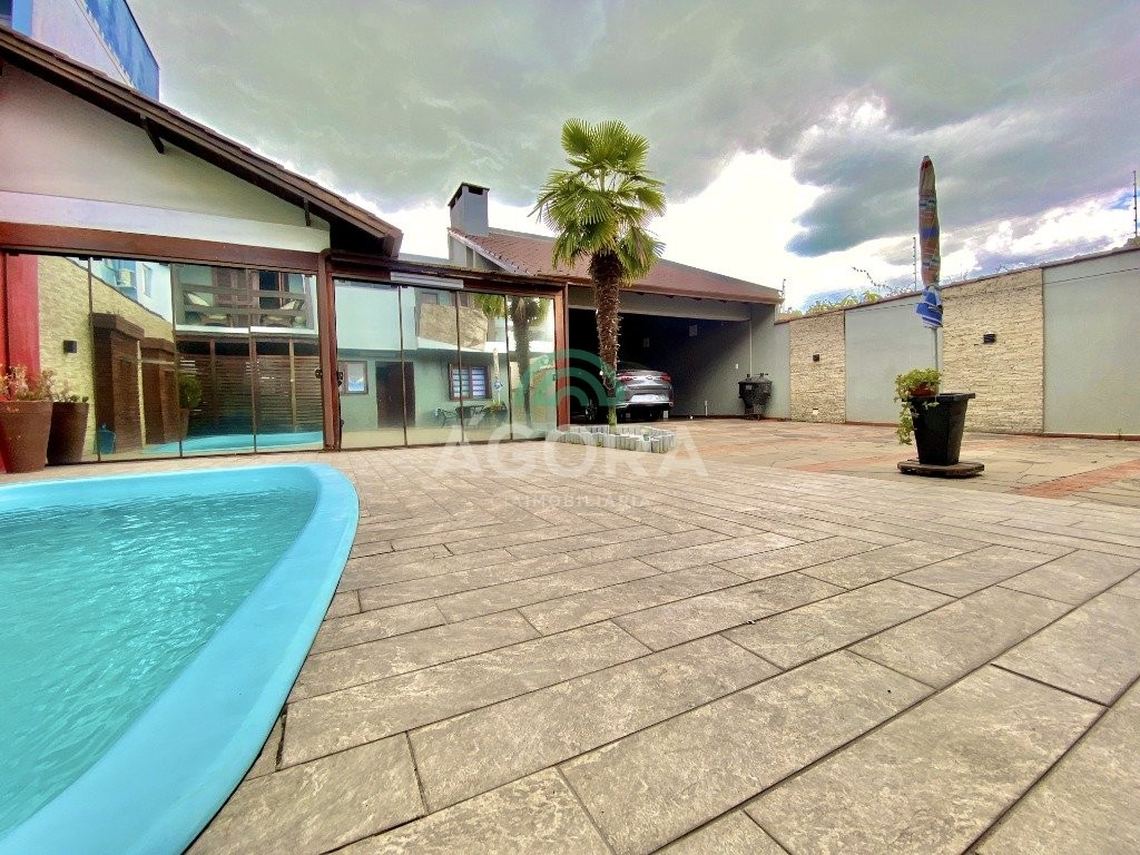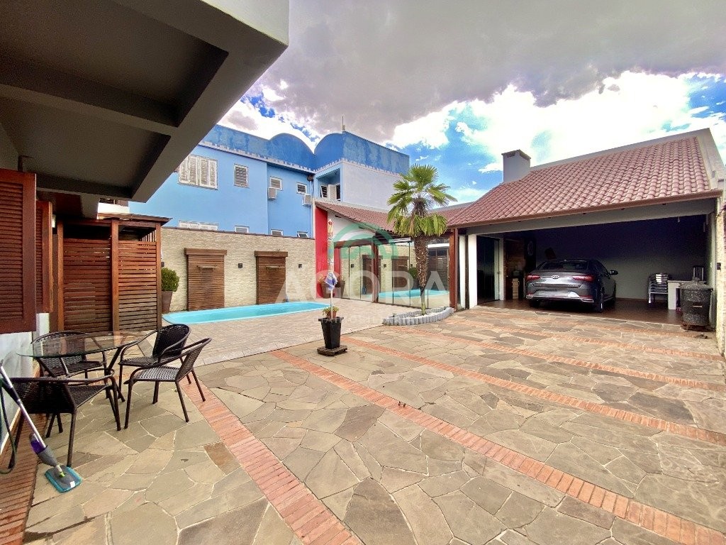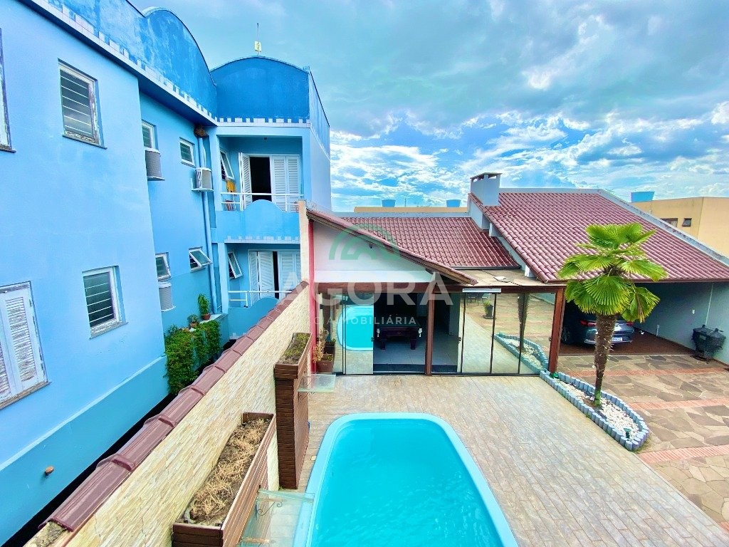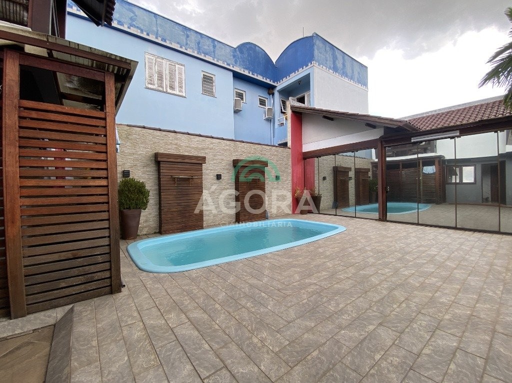 Excelente sobrado semi-mobiliado de 220m² privativos, em um terreno de 10x30, com 3 (três) dormitórios, sendo 1 (uma) suíte com sacada, sala de cinema, podendo ser transformada em um dormitório no térreo, sala de estar e jantar integradas e cozinha, lavanderia, banheiro social, lavabo, água quente, amplo pátio com piscina, quiosque gourmet com churrasqueira, já com espera para segundo piso, além disso no pátio tem espaço para estacionar até 10 (dez) carros.