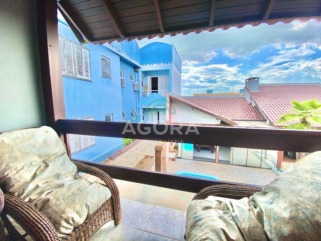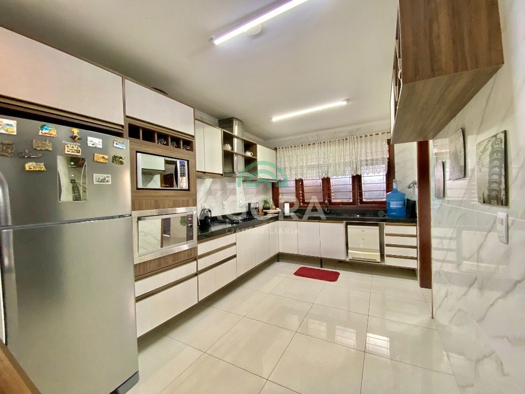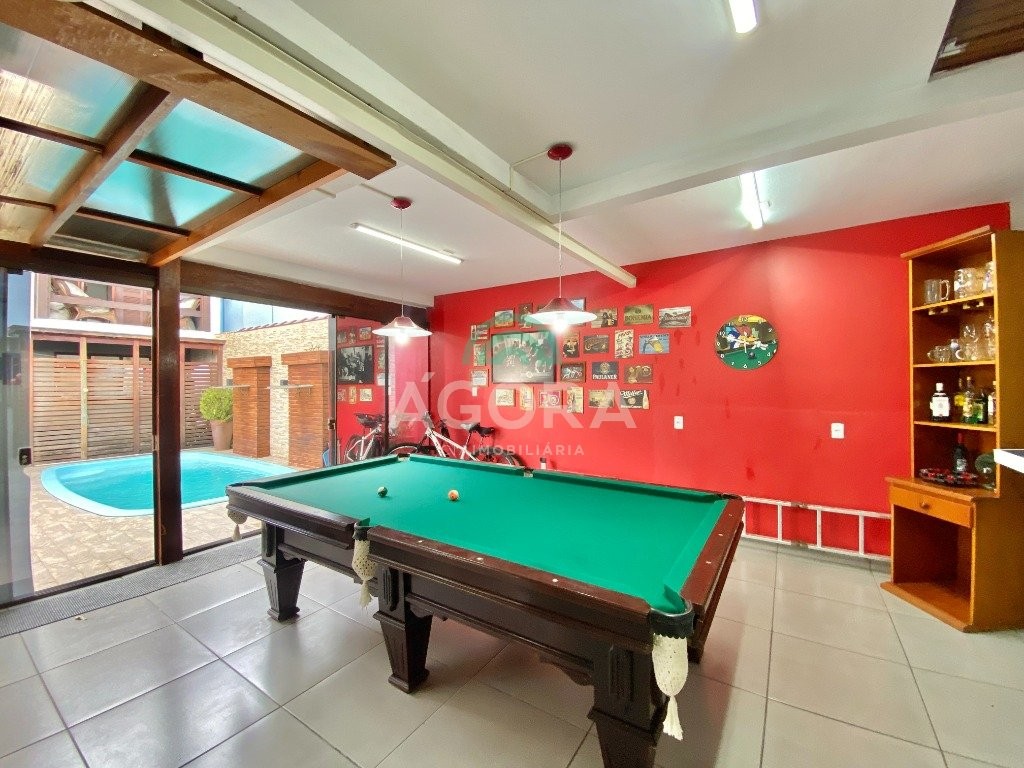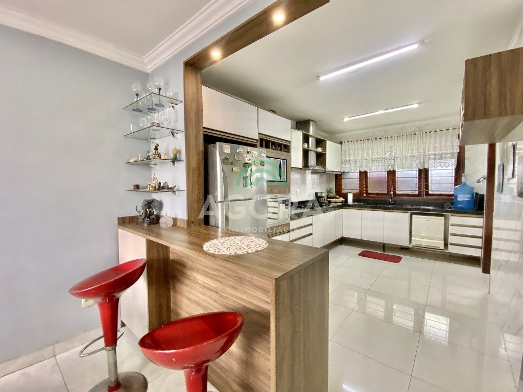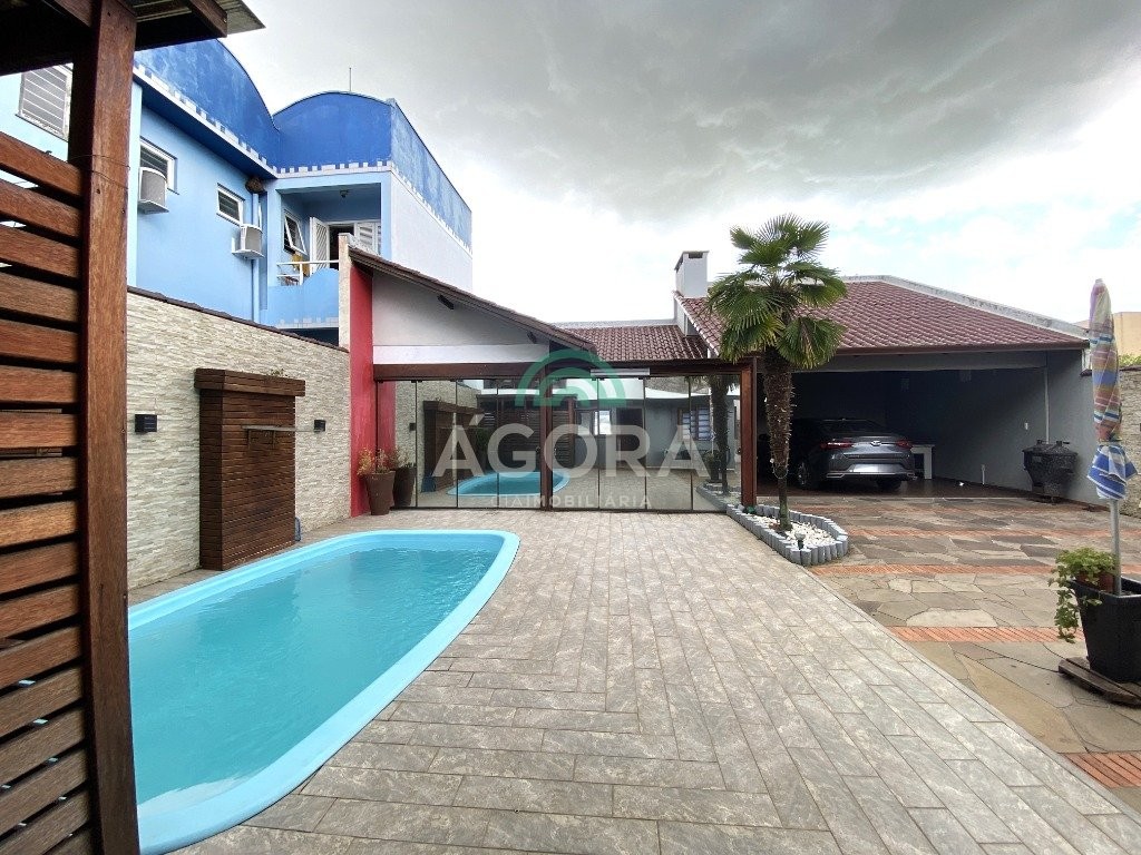 Excelente sobrado semi-mobiliado de 220m² privativos, em um terreno de 10x30, com 3 (três) dormitórios, sendo 1 (uma) suíte com sacada, sala de cinema, podendo ser transformada em um dormitório no térreo, sala de estar e jantar integradas e cozinha, lavanderia, banheiro social, lavabo, água quente, amplo pátio com piscina, quiosque gourmet com churrasqueira, já com espera para segundo piso, além disso no pátio tem espaço para estacionar até 10 (dez) carros.