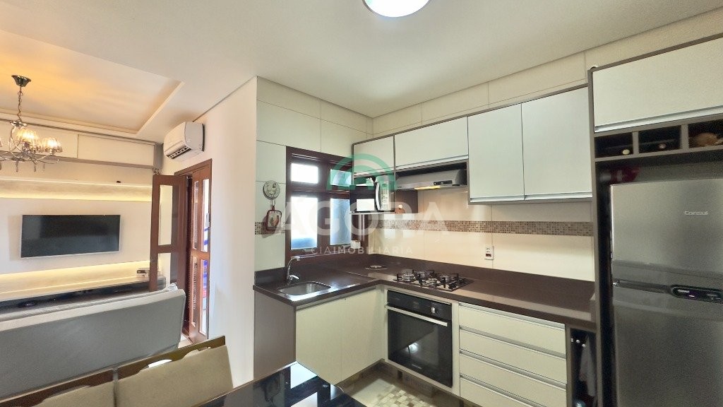 Ágora Cia Imobiliária vende: Sobrado de 104m² privativos, com 2 (dois) dormitórios, sendo 2 (duas) suítes, sala de estar e jantar integradas, cozinha estilo americana, lavabo, churrasqueira, espera para ar condicionado split, pátio nos fundos e vaga para 2 (dois) carros. Localizado no bairro São José.