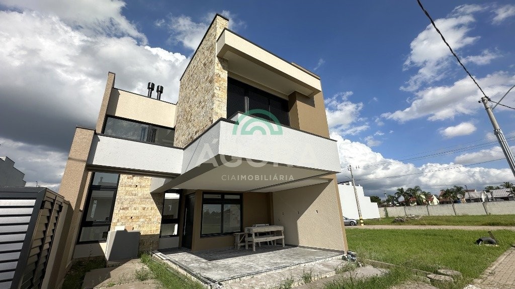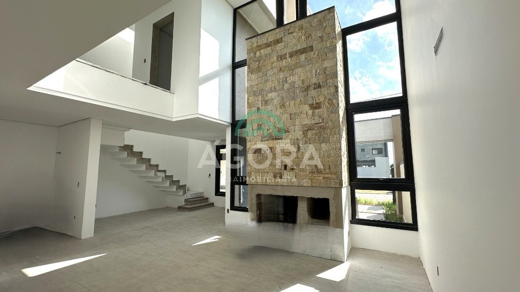 Ágora Cia Imobiliária vende: Sobrado em condomínio fechado de 220m²de área privativa, sendo 3 (três) suítes, sala de estar e jantar, 2 (dois) lavabos interno e externo, lavanderia, banheiro social, acabamento de alto padrão, sistema de automação residencial inteligente, aquecimento a gás em todas as torneiras, lareira a gás, 4 (quatro) ar condicionados split, espaço gourmet com churrasqueira giratória, jacuzzi privativa, placas solares garantindo economia e sustentabilidade e fechadura eletrônica com senha. Diferencial: Com design moderno e acabamento premium. Proporciona segurança e elegância em um só lugar!