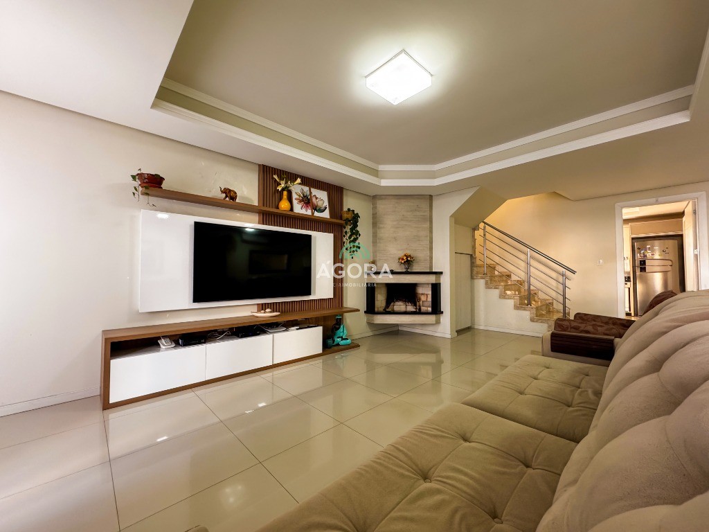 Ágora cia imobiliária vende: excelente sobrado em localização privilegiada! Valor: r$ 1. 190. 000,00 Área privativa: 150m² este sobrado incrível oferece: 3 dormitórios, sendo 1 suíte com varanda amplo living com lareira cozinha e área de serviço separadas lavabo pátio aos fundos com espaço gourmet e churrasqueira localização privilegiada: a poucos metros do park shopping, da praça central e de todo o comércio da cidade! Não perca essa oportunidade! Agende sua visita e venha conhecer o seu novo lar!
