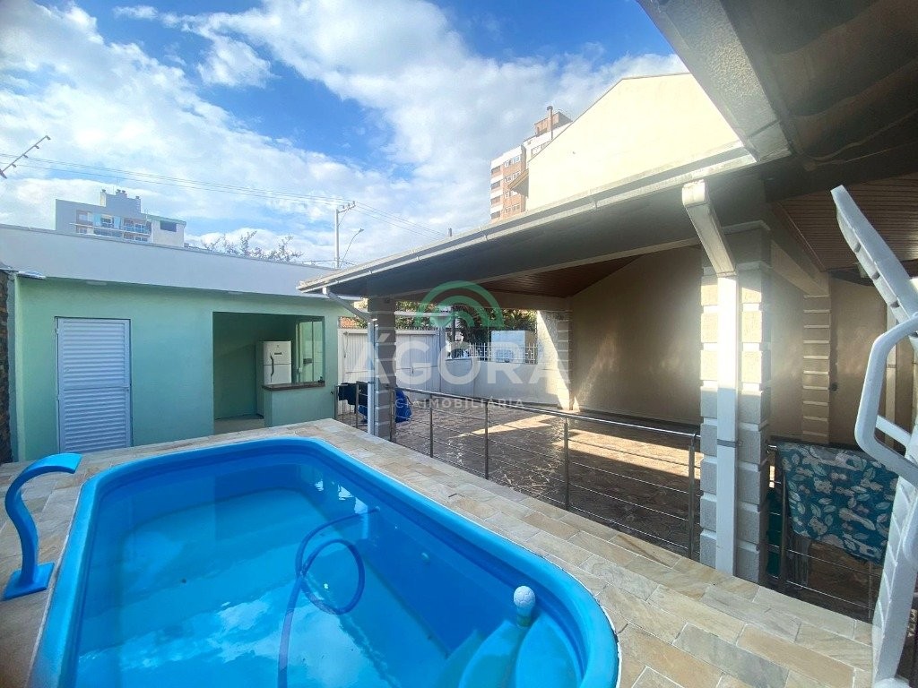 Excelente casa térrea de 150m², com 5 (cinco) dormitórios, sendo 1 (uma) suíte, amplo living com lareira, cozinha planejada, 5 (cinco) banheiros, pátio com quiosque e piscina. Anexo com estar, cozinha, 2 (dois) quartos, sendo 1 (uma) suíte e ampla sacada. Área construída 86,98m² localização privilegiada próximo ao centro, conjunto comercial e universidade.