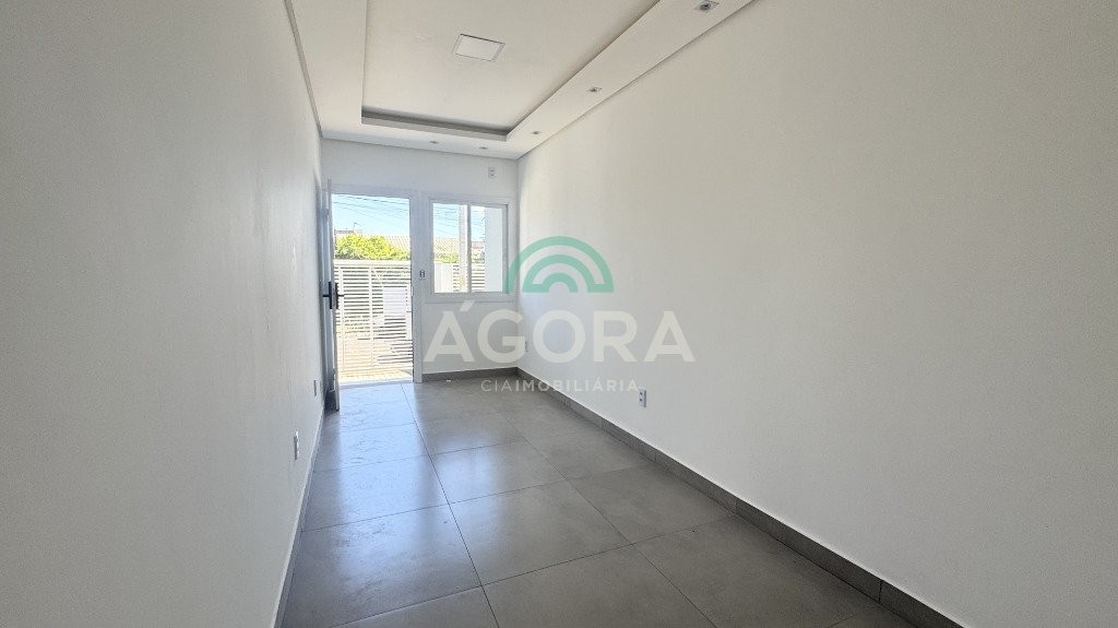 composta por 2 (dois) dormitórios, sala e cozinha integrados, banho social, lavanderia e churrasqueira. Imóvel será entregue com rebaixe em gesso, com laje, isolamento acústico, aberturas em alumínio branco, piso em porcelanato, espera para água quente, caixa d'água, câmeras de segurança, cerca elétrica e vaga para carro. Possui sistema automatizado, ajustando iluminação, persianas, monitoramento de câmeras, controle do portão de entrada, ativação de alarme, entre outros. Localizado no bairro igara, um dos bairros mais desejados de canoas!