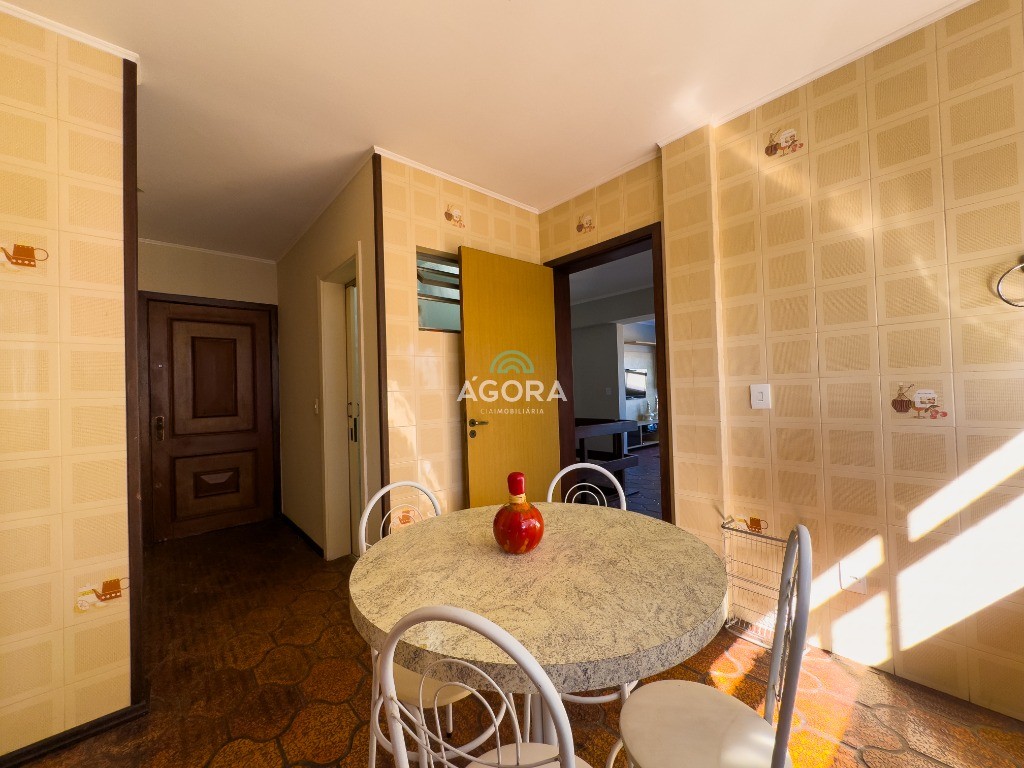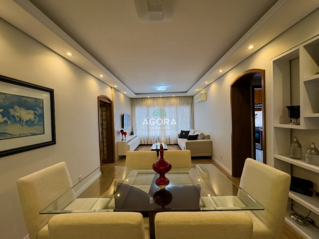 Apartamento semi mobiliado com três dormitórios e vagas de garagem.