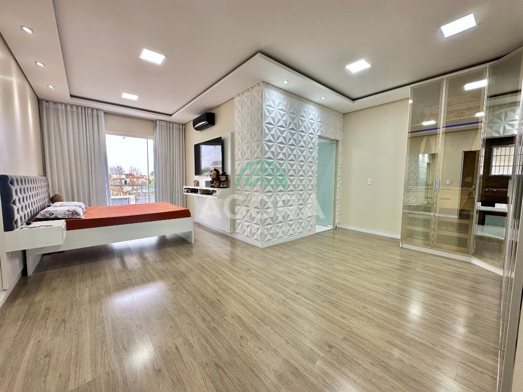 Amplo sobrado medindo 360m² de área privativa e com 1. 000m² de terreno, sendo 4 (quatro) dormitórios, suíte e todos com ampla sacada e mezanino. Living totalmente integrado com lavabo e área de serviço separada. Amplo pátio aos fundos com churrasqueira e piscina, ainda com um amplo quiosque gourmet completo. Pátio também com quadra de esportes.