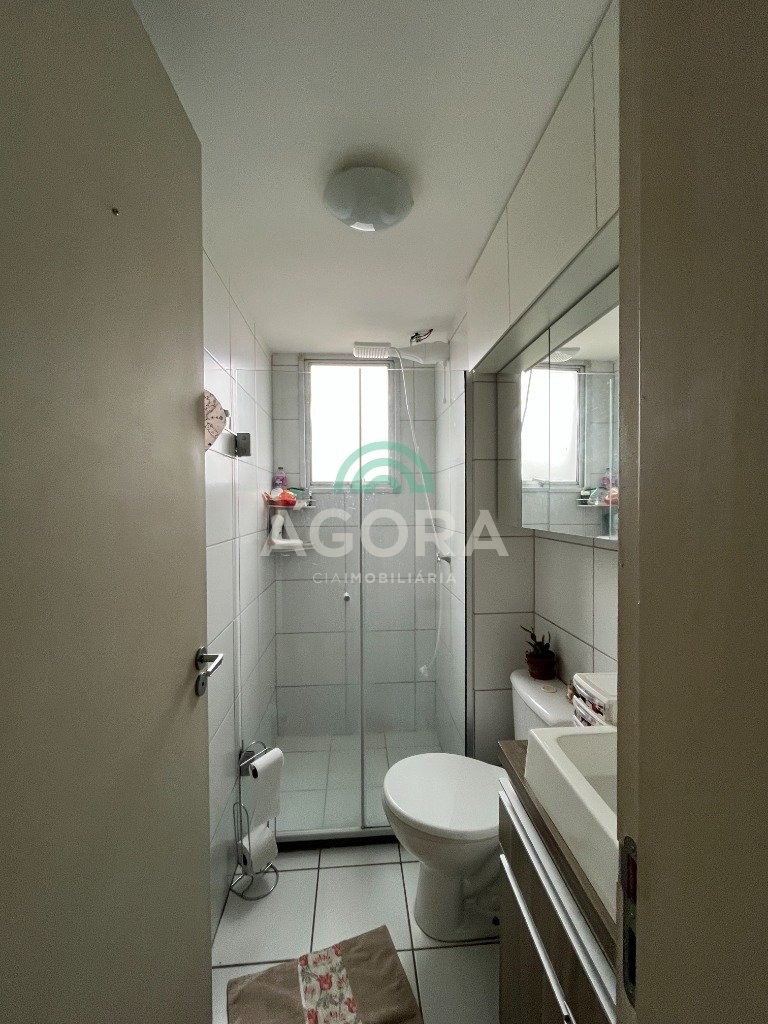 Apartamento de 43,40m² de área privativa, com 2 (dois) dormitórios, sala, cozinha, banheiro e vaga para 1 (um) carro. Fica semi-mobiliado com os planejados da cozinha, dormitório e ar condicionado. Condomínio possui elevador, portaria 24 horas, piscina, salão de festas, quiosque com churrasqueira, playground e quadra de esportes. Aceita financiamento.