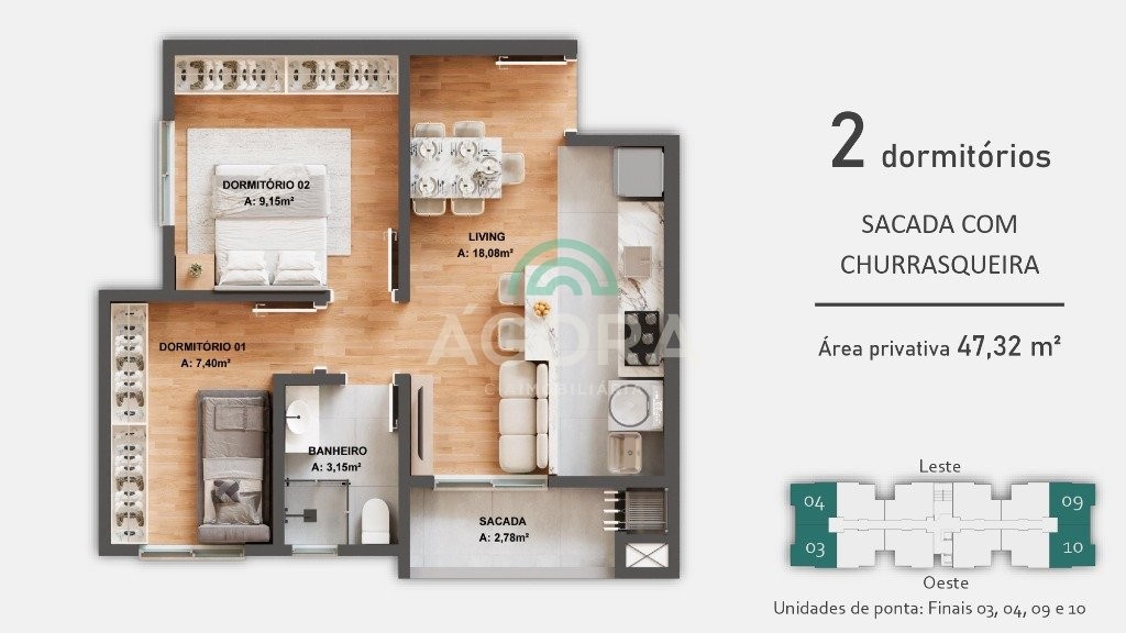Nápoles clube residencial! Apartamentos de 2 e 3 dormitórios com opção de suíte com sacada e churrasqueira, com metragens de 43,66m² e 81,53m2. Infraestrutura completa de lazer: salão de festas quiosques espaço fitness coworking oespaço infantil market place piscina