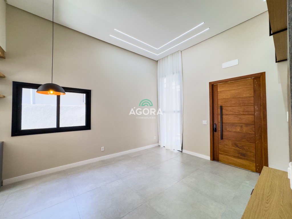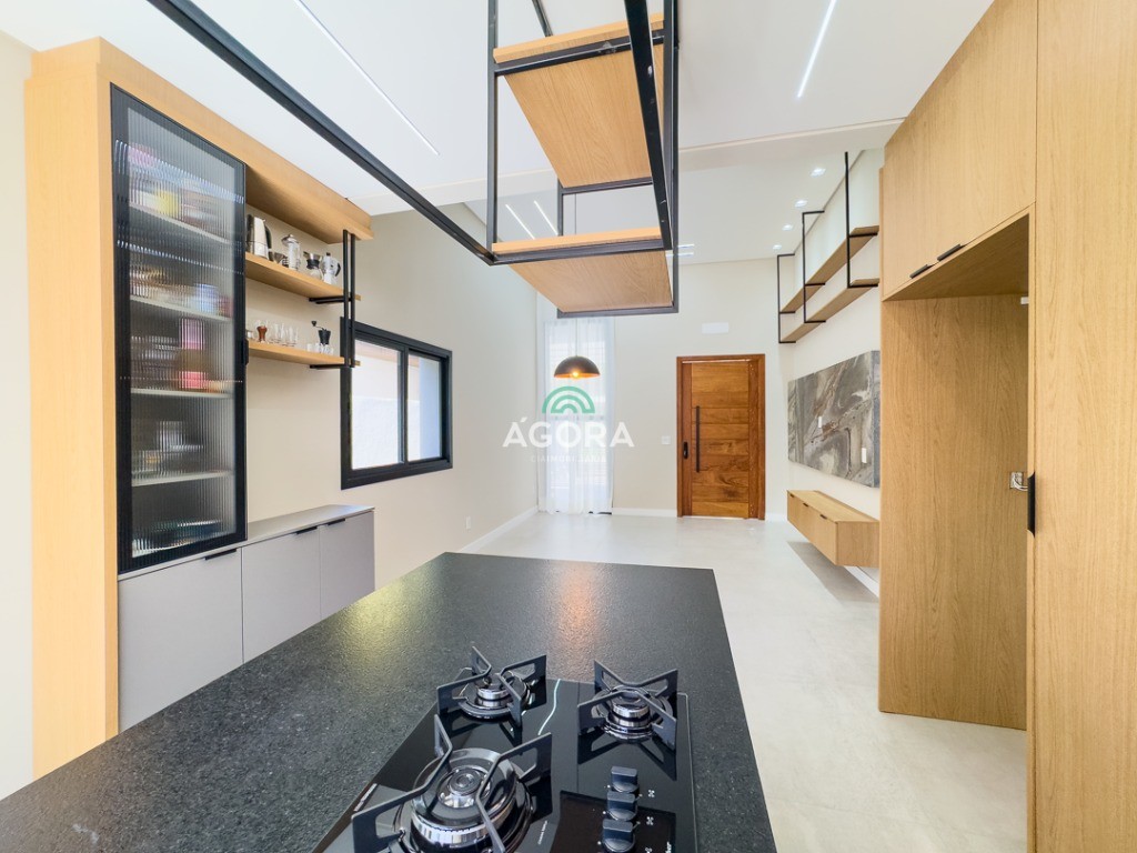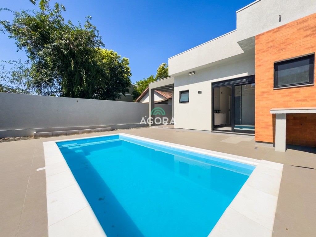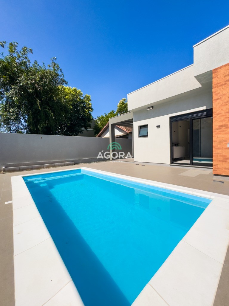 Casa térrea de123,55m² de área privativa, sendo 3 (três) dormitórios, 1 (uma) suíte, sala, living, cozinha, lavanderia, banheiro social e lavabo, 2 (duas) vagas cobertas e piscina com espera para aquecimento. Imóvel com espera fotovoltaica e aquecimento a gás. Incluso as pedras são gabriel preto escovado nos banheiros , living, lavabo e lavanderia. Imóvel fica com moveis planejados em todos os ambientes. Grades frontal de vidros, tem espera para câmera , interfone e pontos de luz e pergolado.