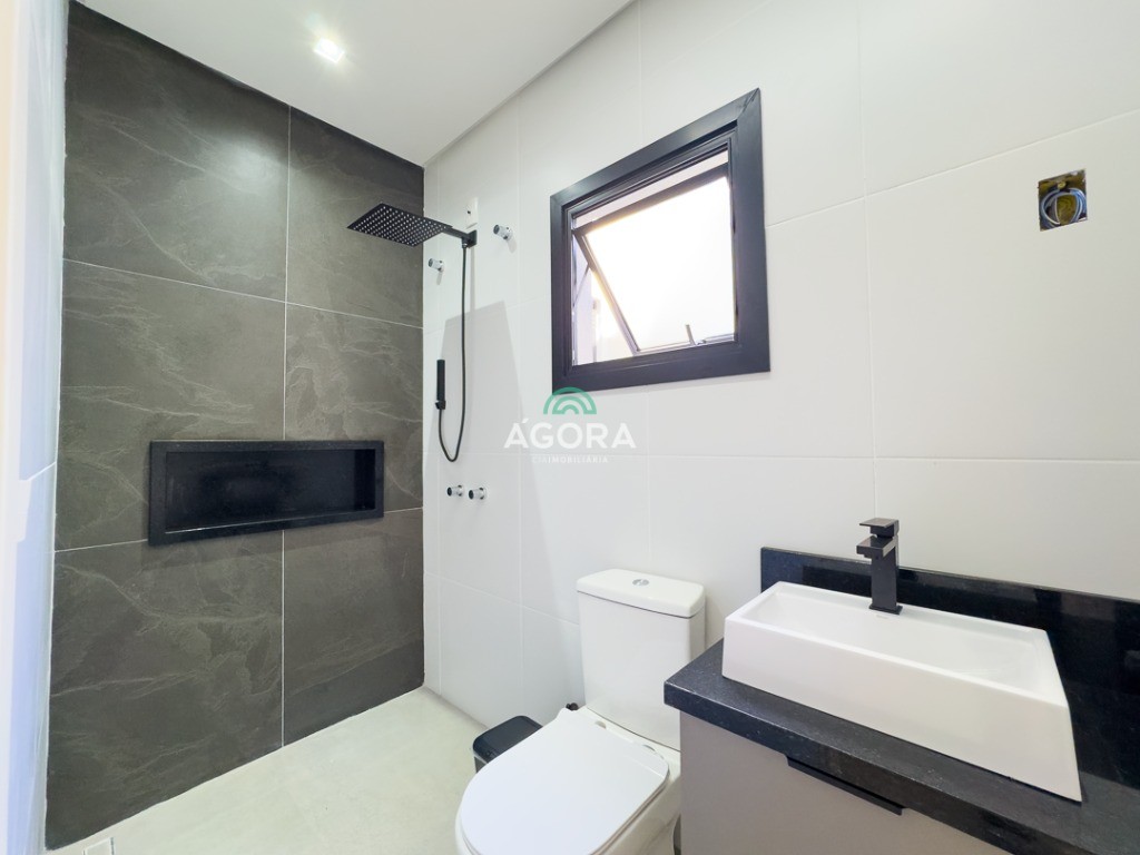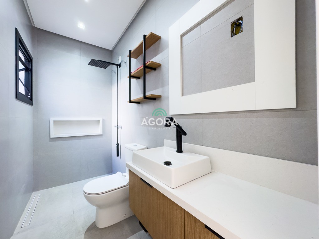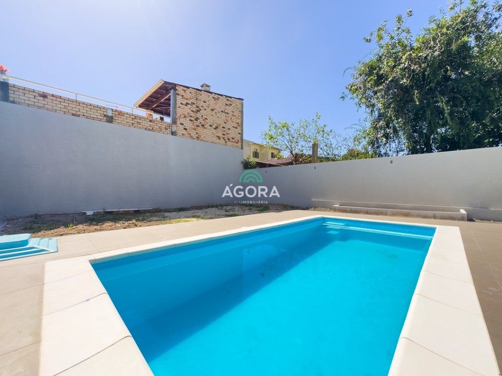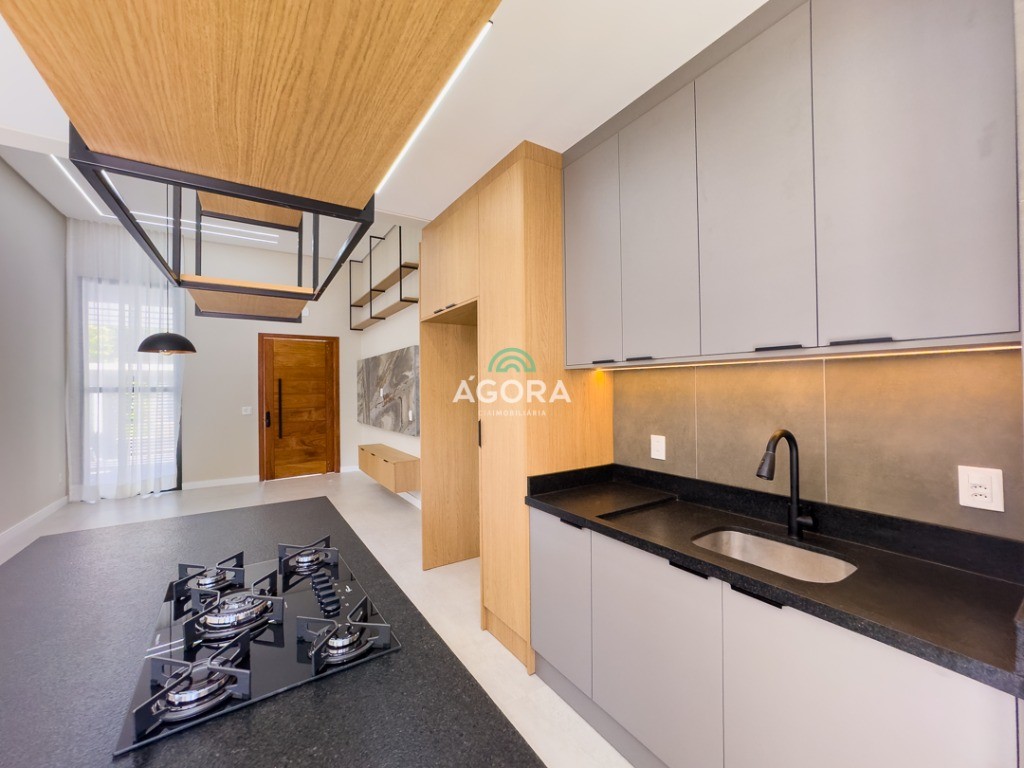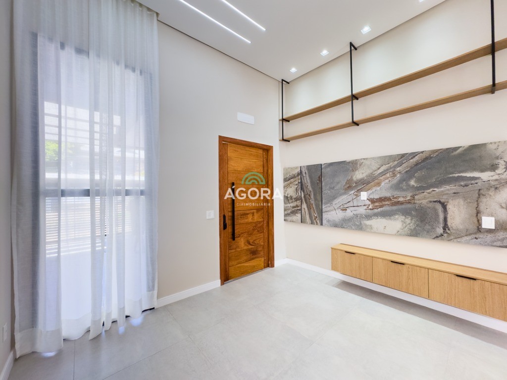 Casa térrea de123,55m² de área privativa, sendo 3 (três) dormitórios, 1 (uma) suíte, sala, living, cozinha, lavanderia, banheiro social e lavabo, 2 (duas) vagas cobertas e piscina com espera para aquecimento. Imóvel com espera fotovoltaica e aquecimento a gás. Incluso as pedras são gabriel preto escovado nos banheiros , living, lavabo e lavanderia. Imóvel fica com moveis planejados em todos os ambientes. Grades frontal de vidros, tem espera para câmera , interfone e pontos de luz e pergolado.