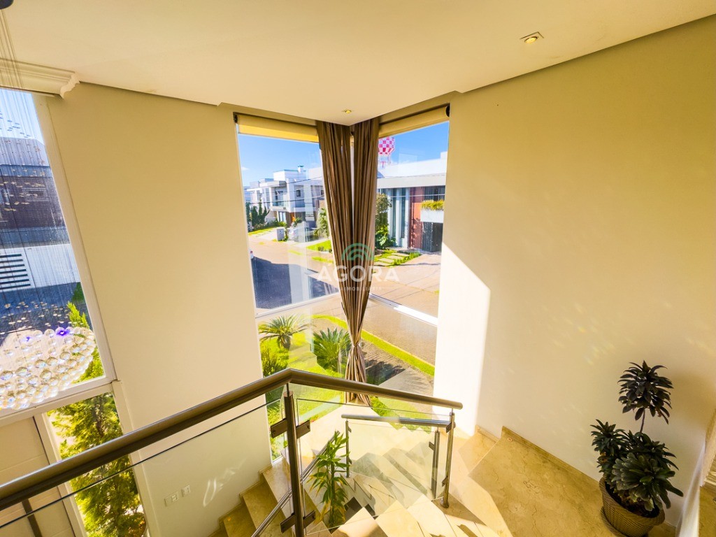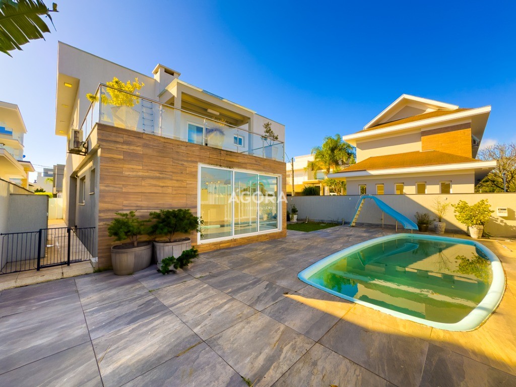 Ágora Cia Imobiliária vende: Sobrado de alto padrão mobiliado em condomínio fechado de terrenos. Sobrado com 326m² construídos. Possui 3 (três) suítes, sendo a suíte máster com hidromassagem, sacada e closet. Living com pé direito duplo, cortinas automatizadas, living para 2 (dois) ambientes com lareira, acesso ao pátio. Cozinha e área de serviço separadas, corredor lateral facilitando o acesso de serviço. Sala de TV no 2º (segundo) pavimento com lareira. Espaço Gourmet, piscina e uma belíssima vista para Porto Alegre. Permanecerão todos os móveis sob medida; aparelhos de ar condicionados; lustres, persianas. Condomínio com lado privativo, salões de festas, quadra de esportes, segurança 24 horas, playground.
